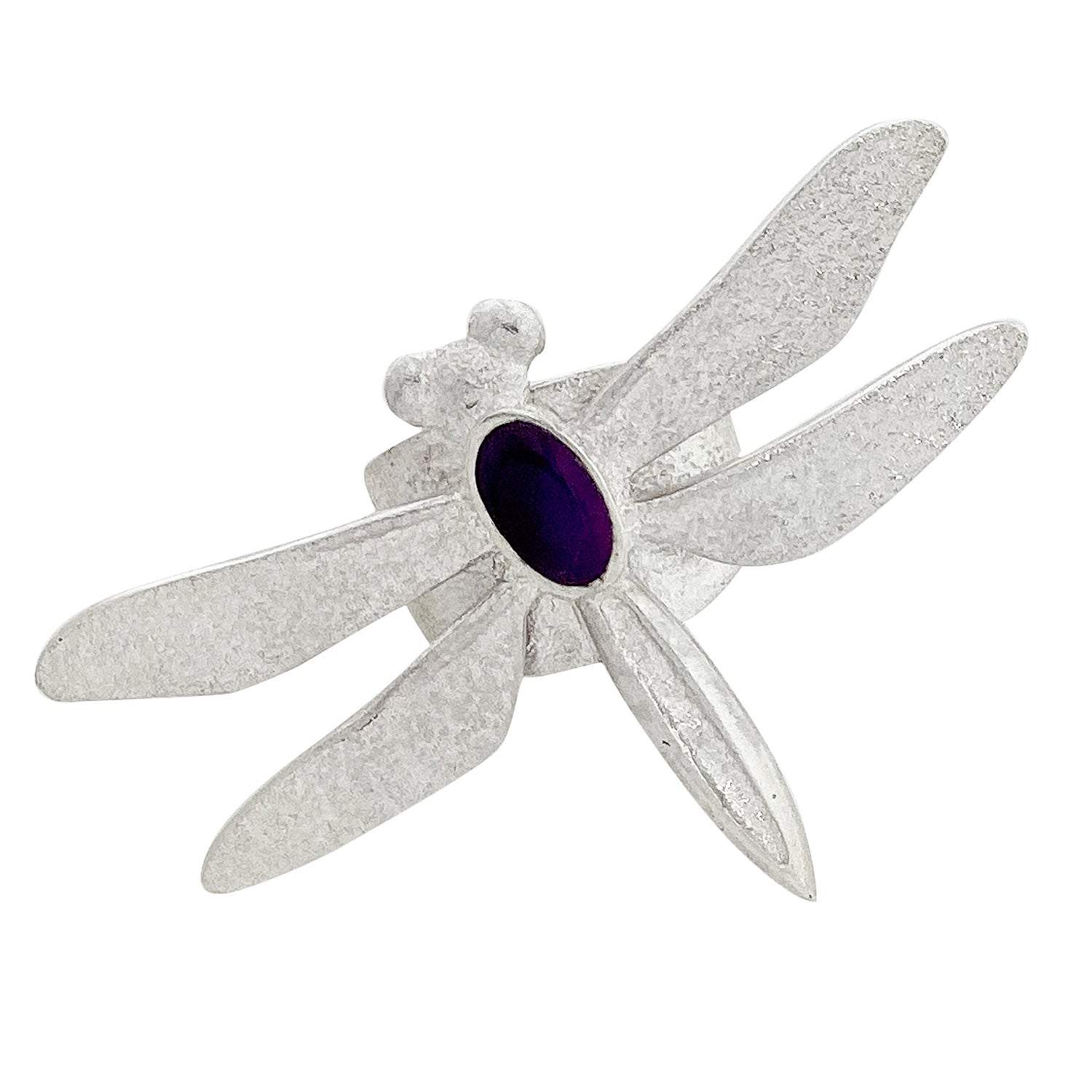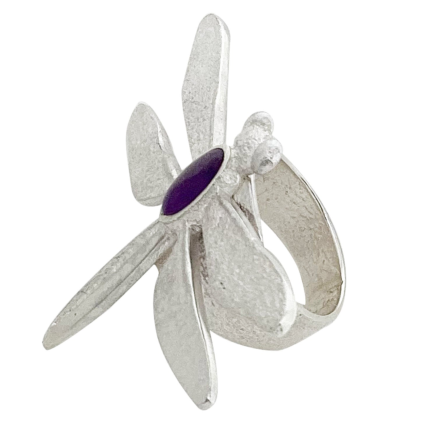 Kelsey Jimmie, Ring, Purple Sugilite, Dragonfly, Tufa, Navajo Handmade, 6 1/2