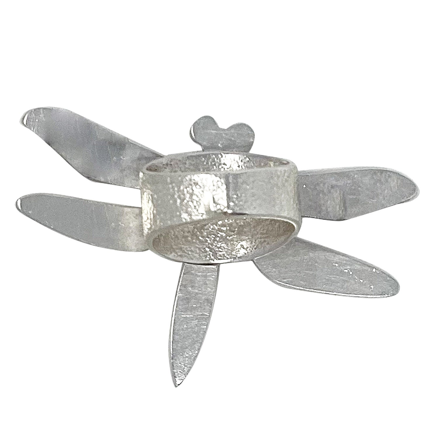 Navajo artist Kelsey Jimmie makes some very detailed pieces of handmade art. You can always count on his work showcasing excellent craftsmanship. This ring is a wonderful example of his creativity and talent. The ring is a fascinating piece of carved tufa silver that is filled with Kelsey's creativity and energy. The magnificent purple stone serves as the body of the dragon fly. Kelsey carves incredible wings, tail and head around that sugilite stone to turn the piece of wearable art into a fascinating dragonfly. We have some other Kelsey Jimmie art on the online Trading Post, make sure you check them all out.