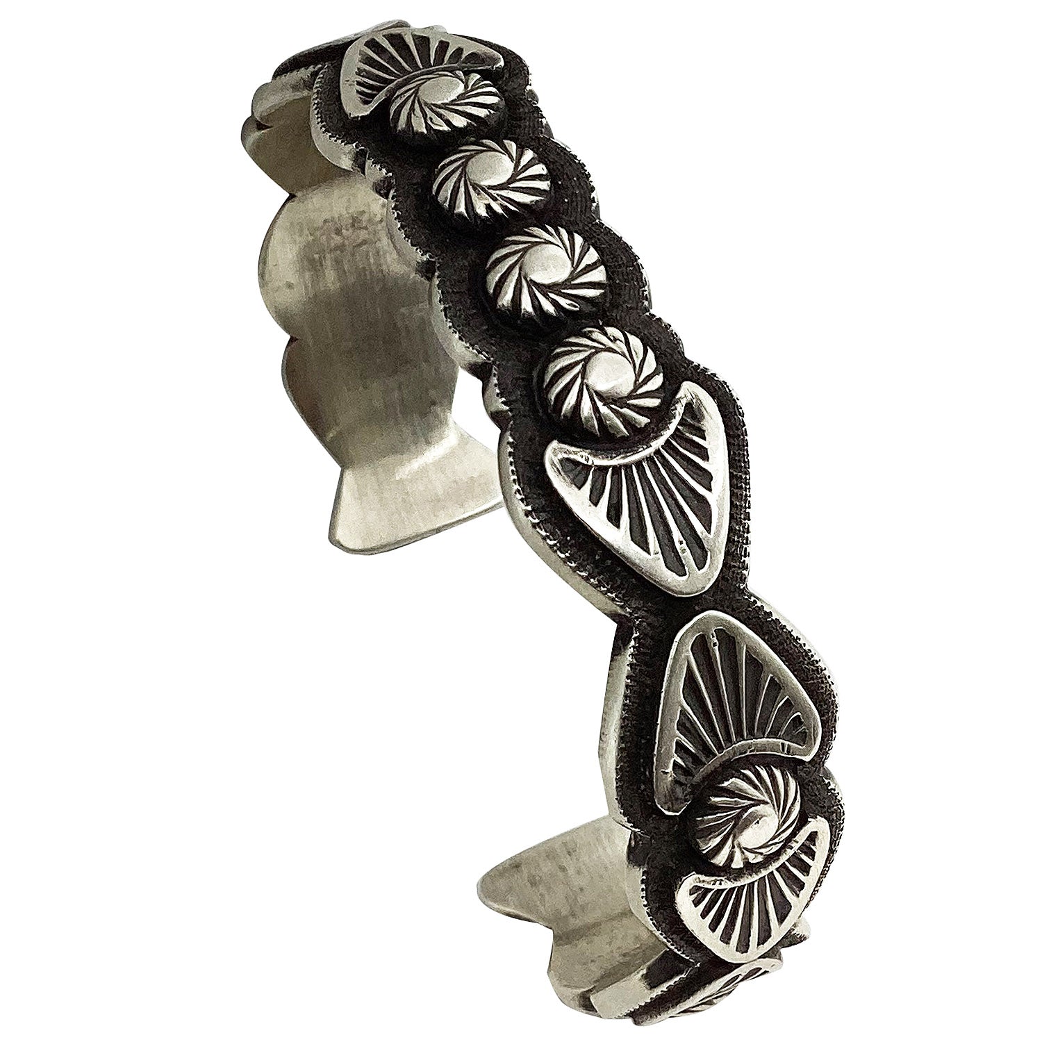 Thomas Jim, Bracelet, Stackable, Silver Applique, Navajo Handmade, 6"