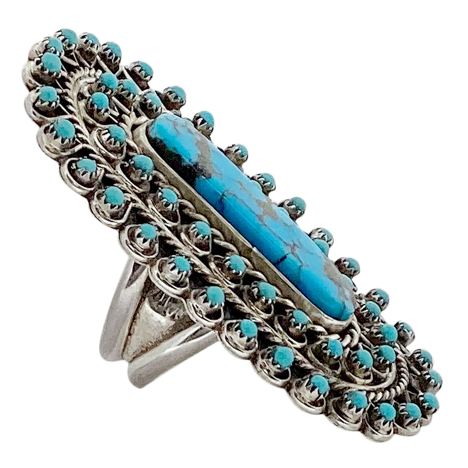 Jesse Johnson, Cluster Ring, Kingman Turquoise, Petit Point, Zuni, 9