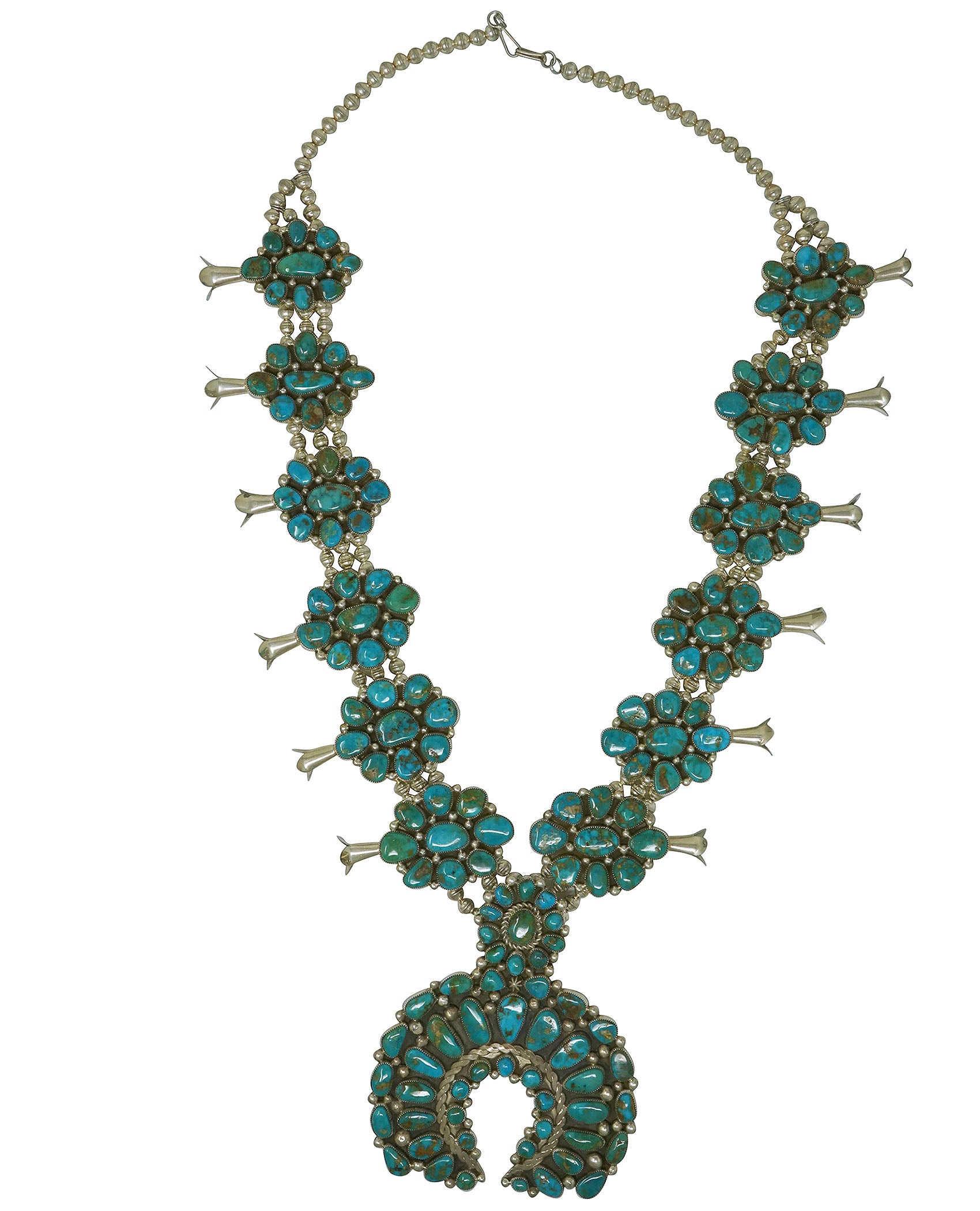 Melvin, Tiffany Jones, Necklace, Squash Blossom, Blue Gem Turquoise, Navajo, 30"
