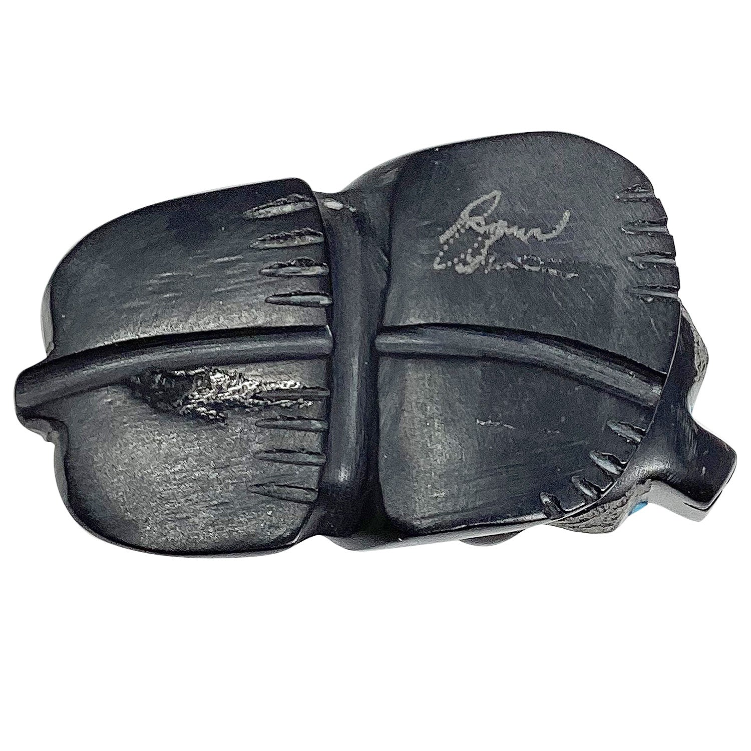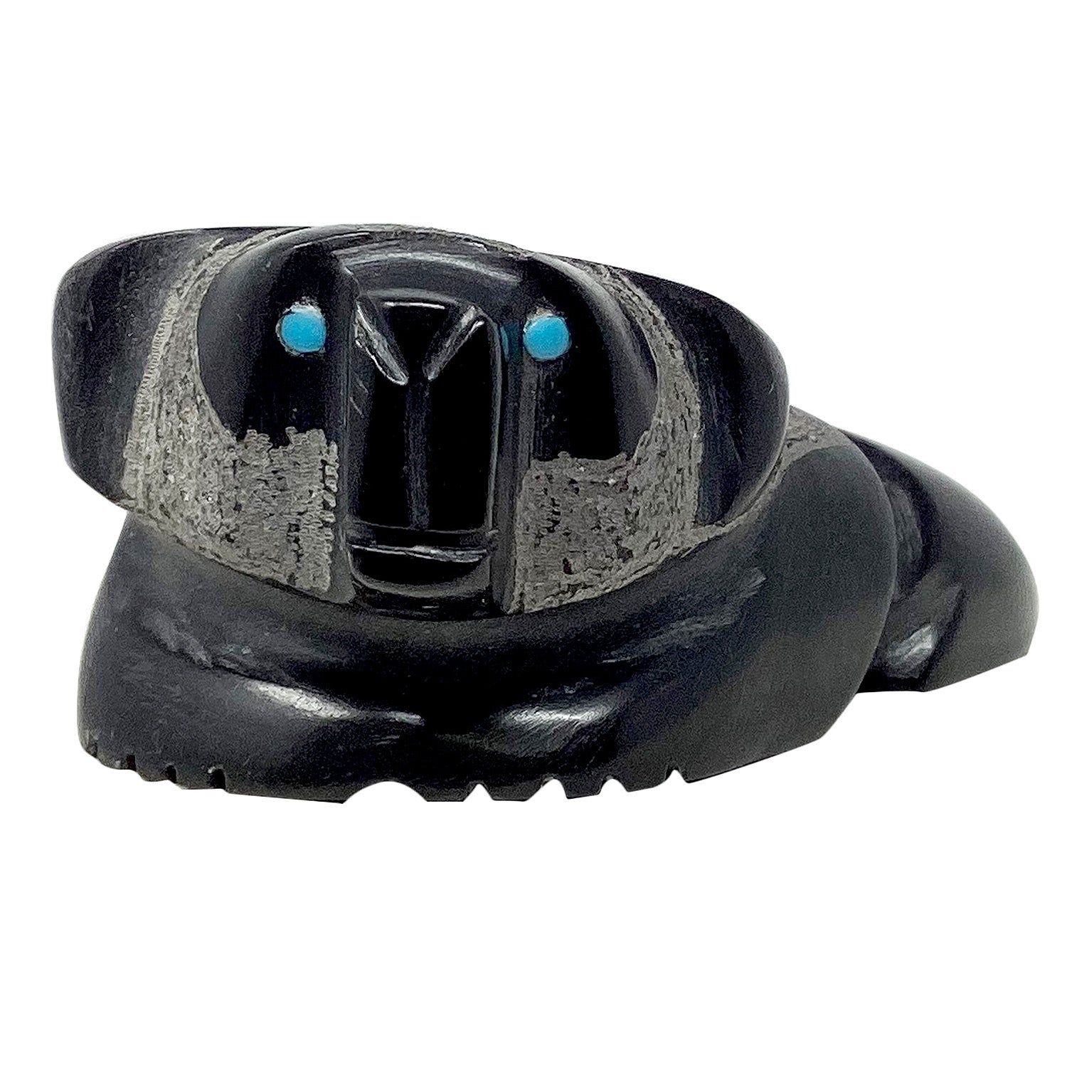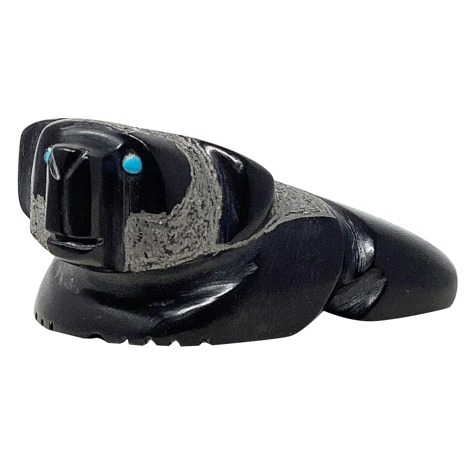 Reynold Lunase, Bear Fetish, Black Marble, Zuni Handmade, 2 " x 1 1/8"