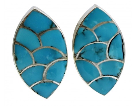 Lynelle Johnson, Earrings, Kingman Turquoise, Fish Scale, Zuni Made, 1"