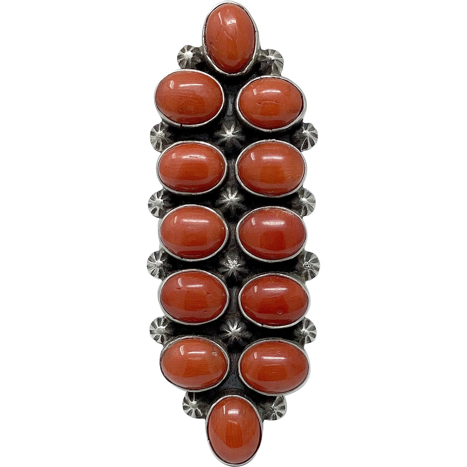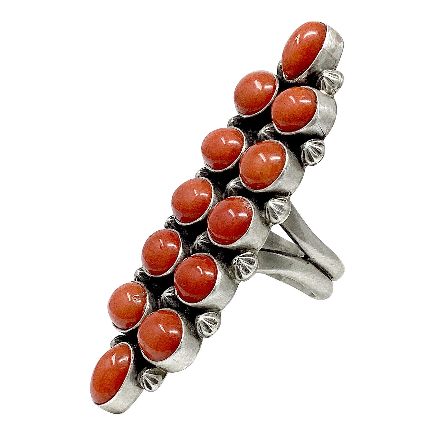Freddie Maloney, Ring, Coral, Sterling Silver, Navajo Handmade, 8