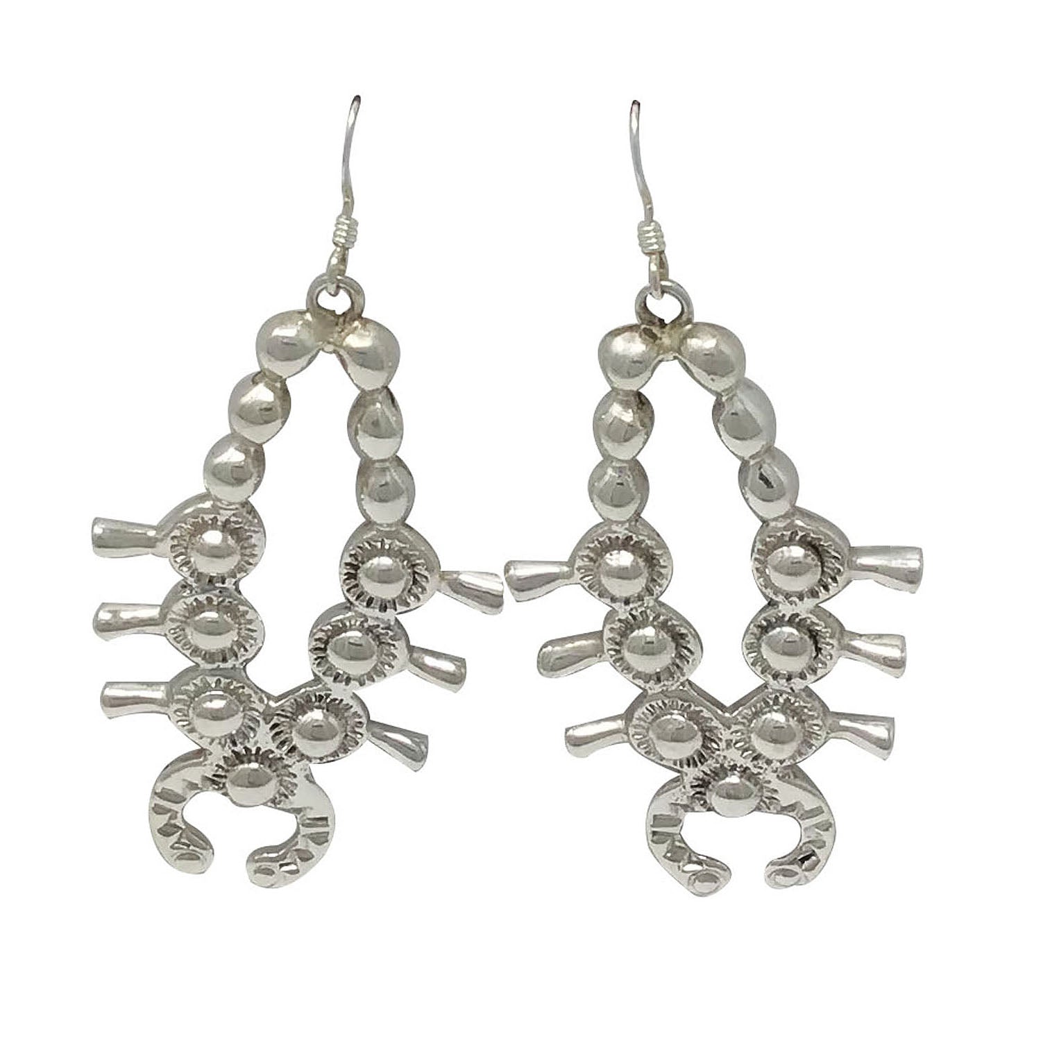 Allison Manuelito, Earrings, Squash Blossom, Navajo Handmade, 2 1/2" x 1"