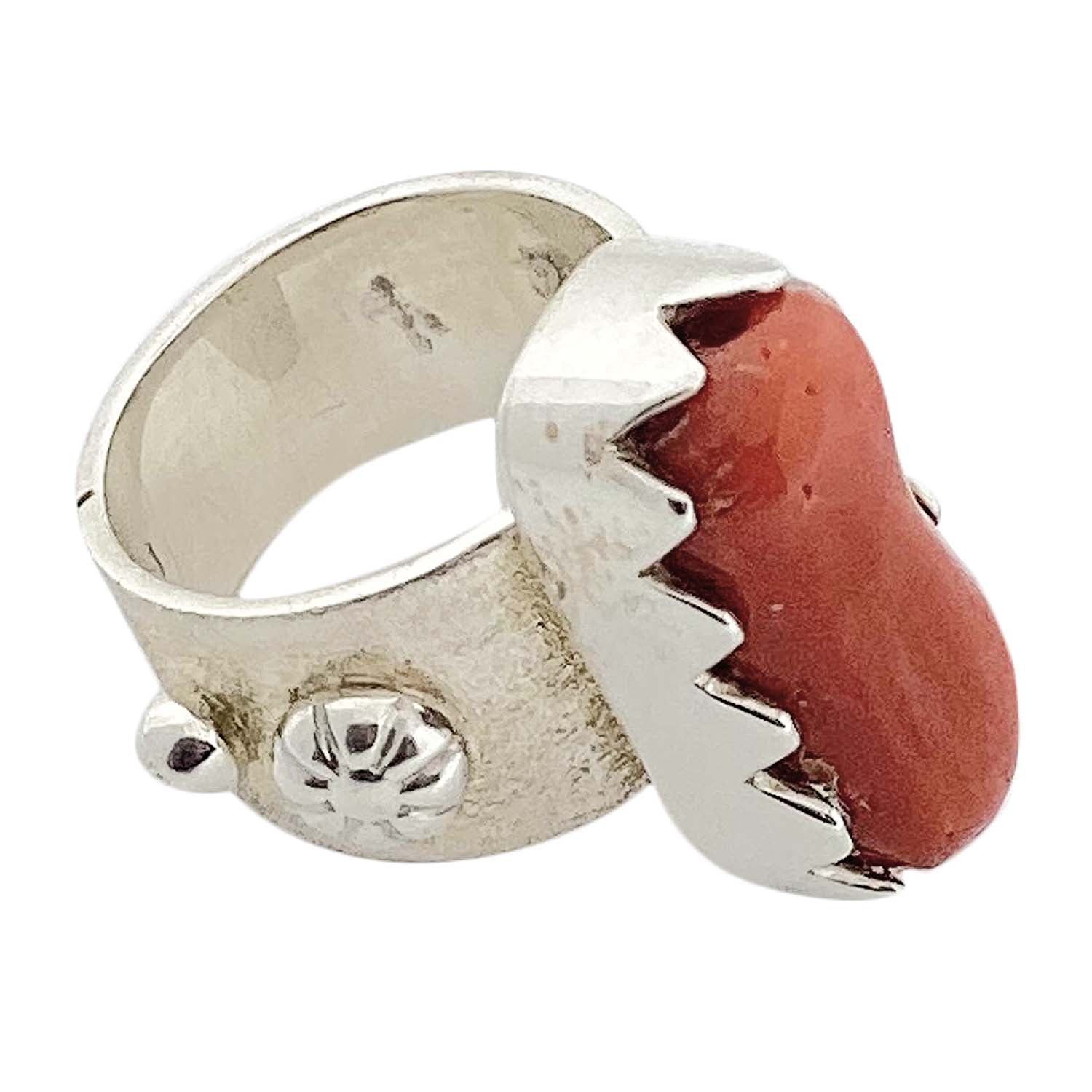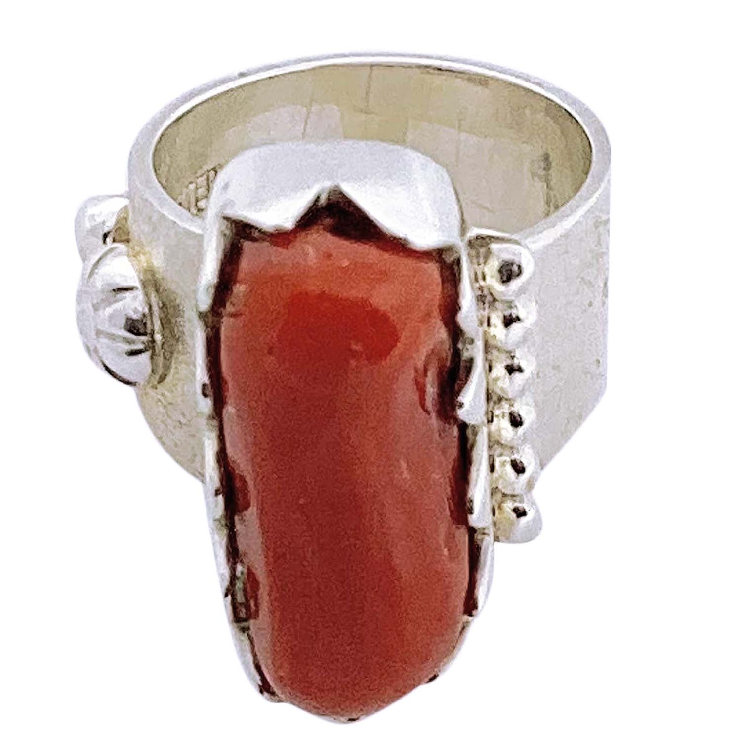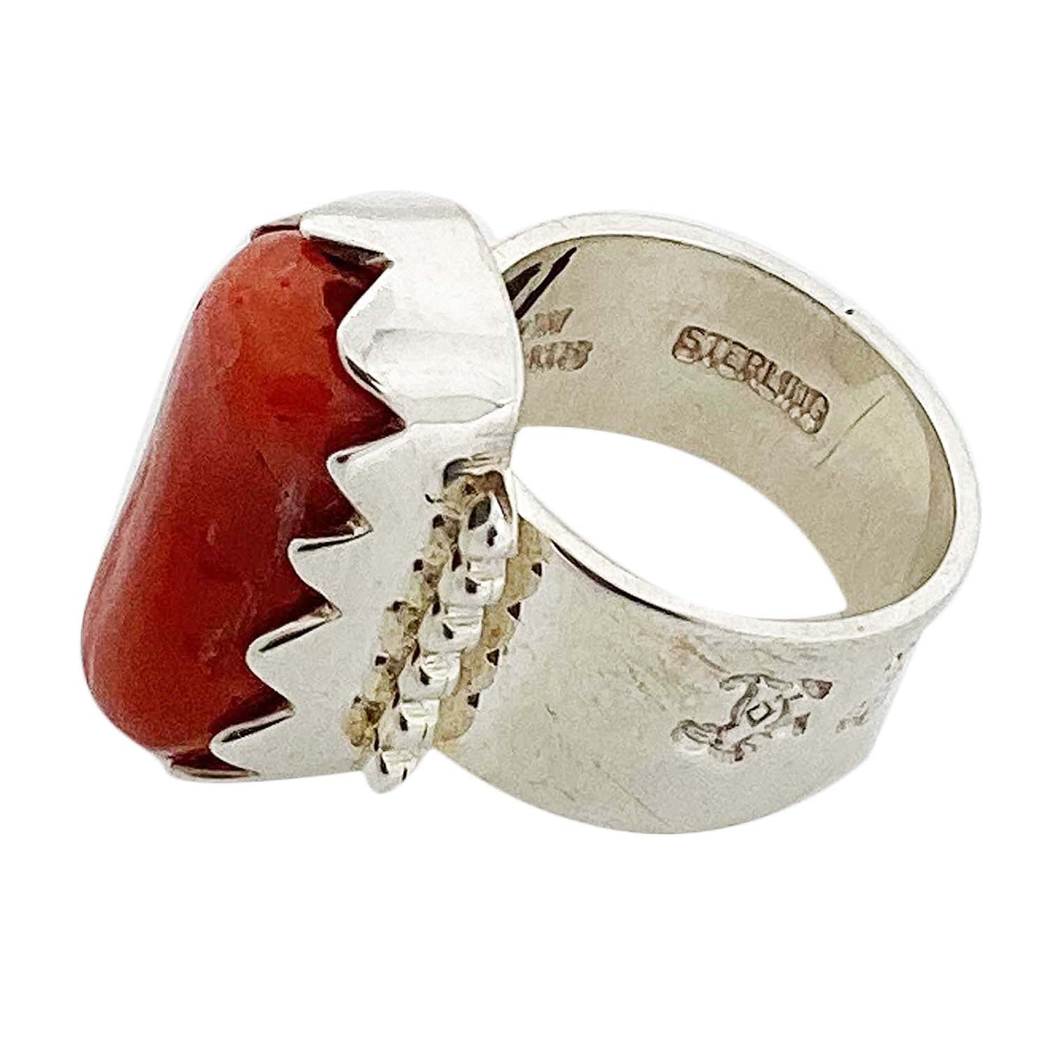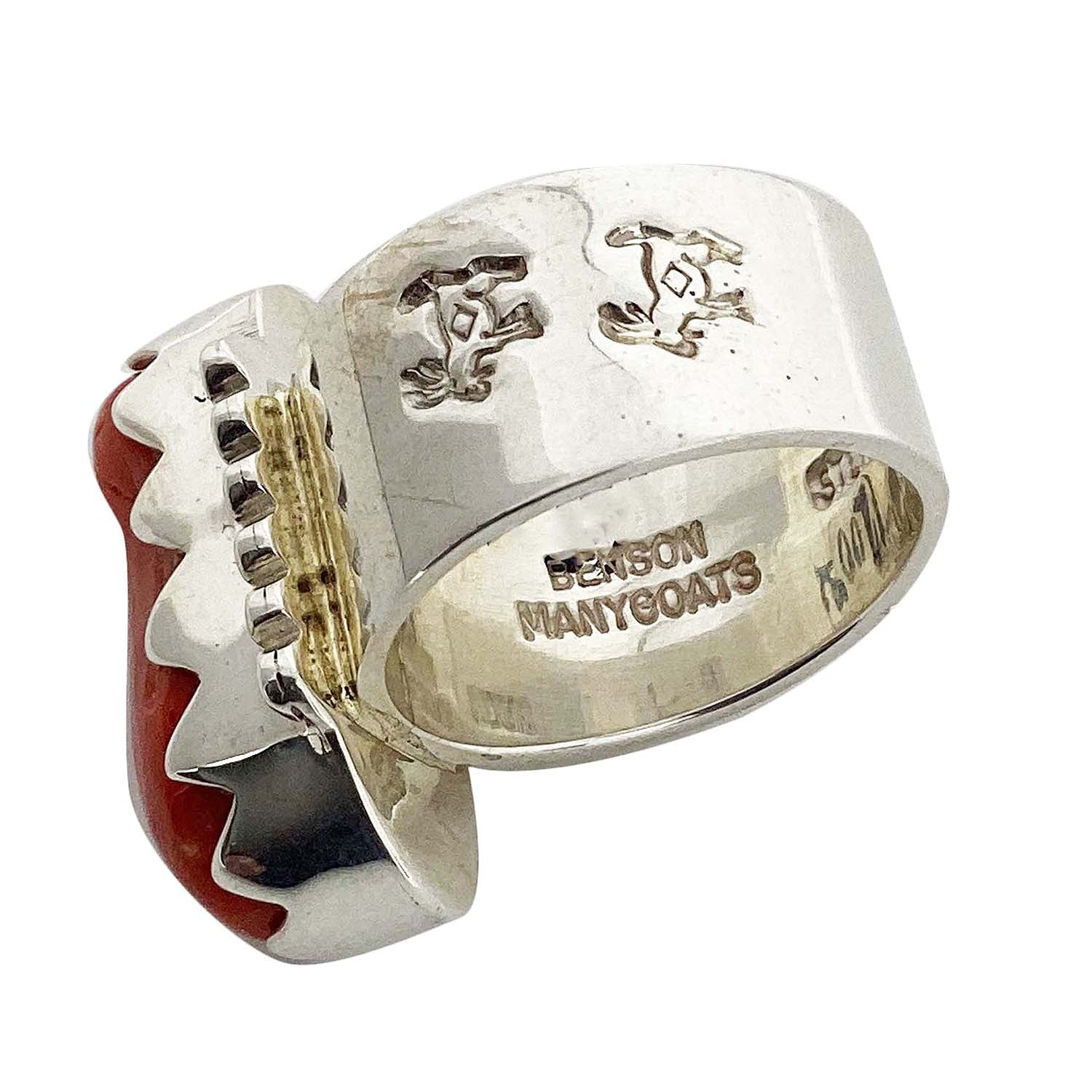 Benson Manygoats, Ring, Mediterranean Coral, Traditional, Navajo Made, 8 3/4