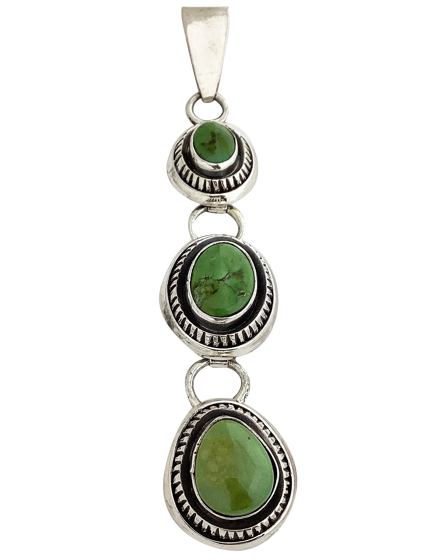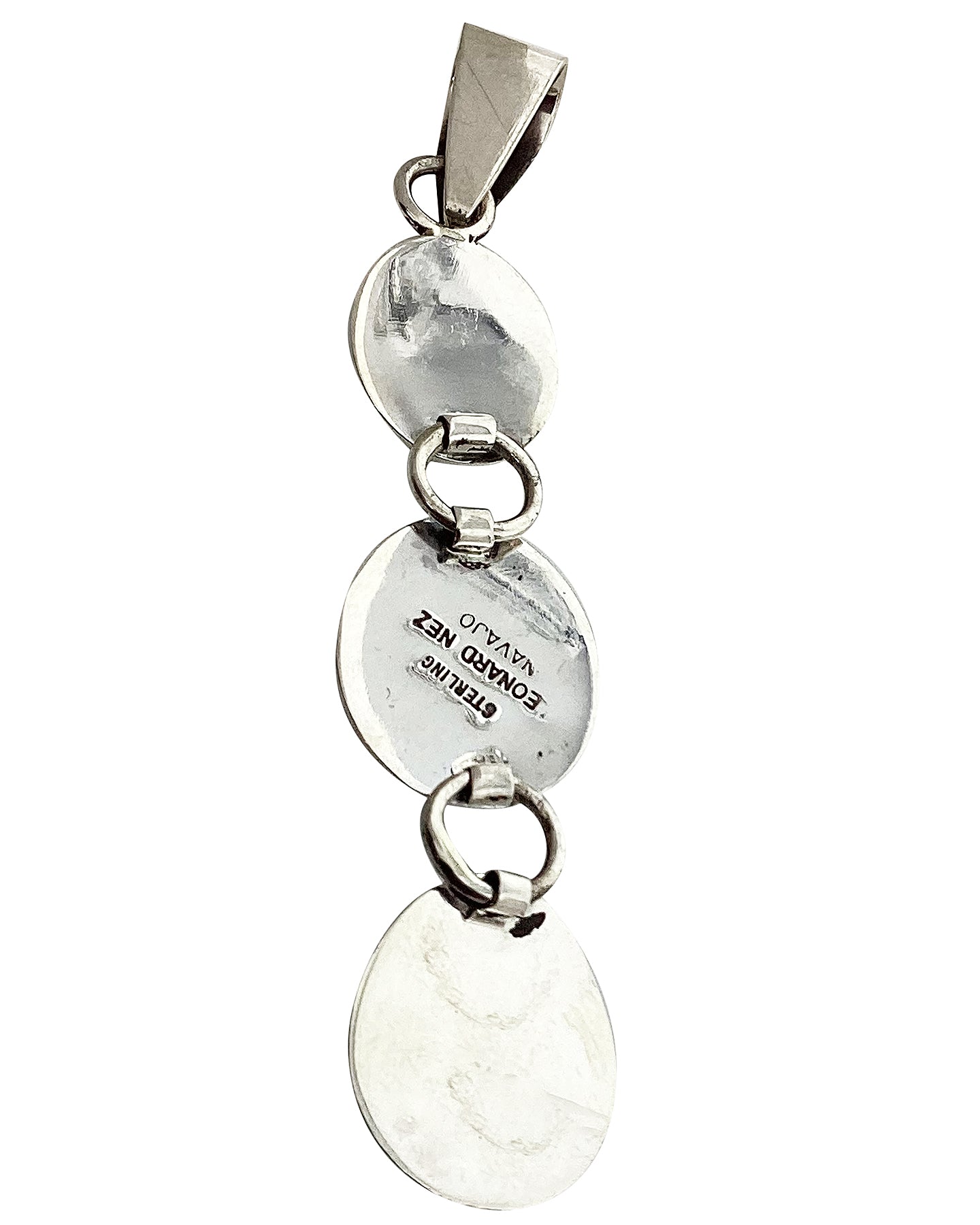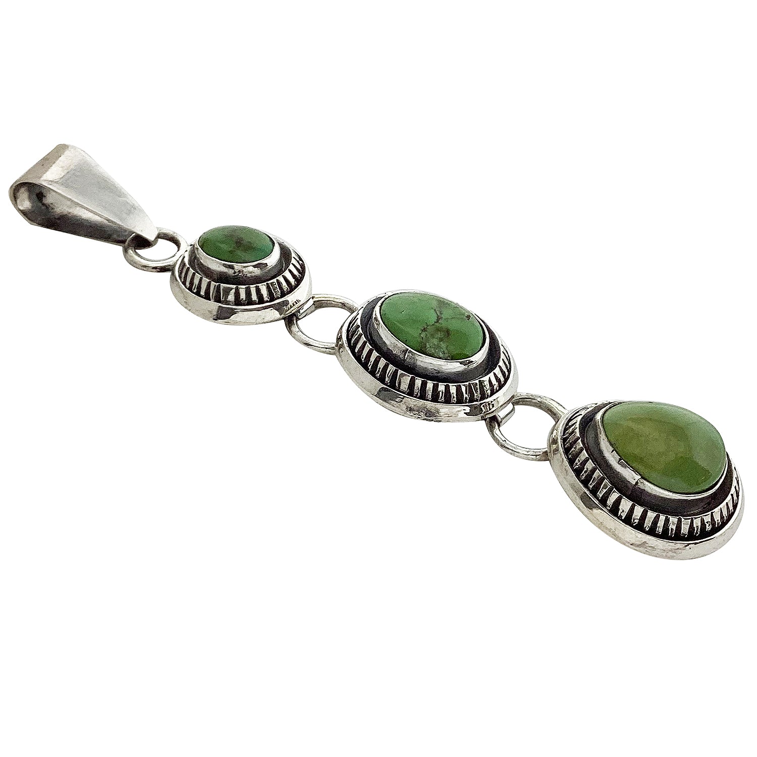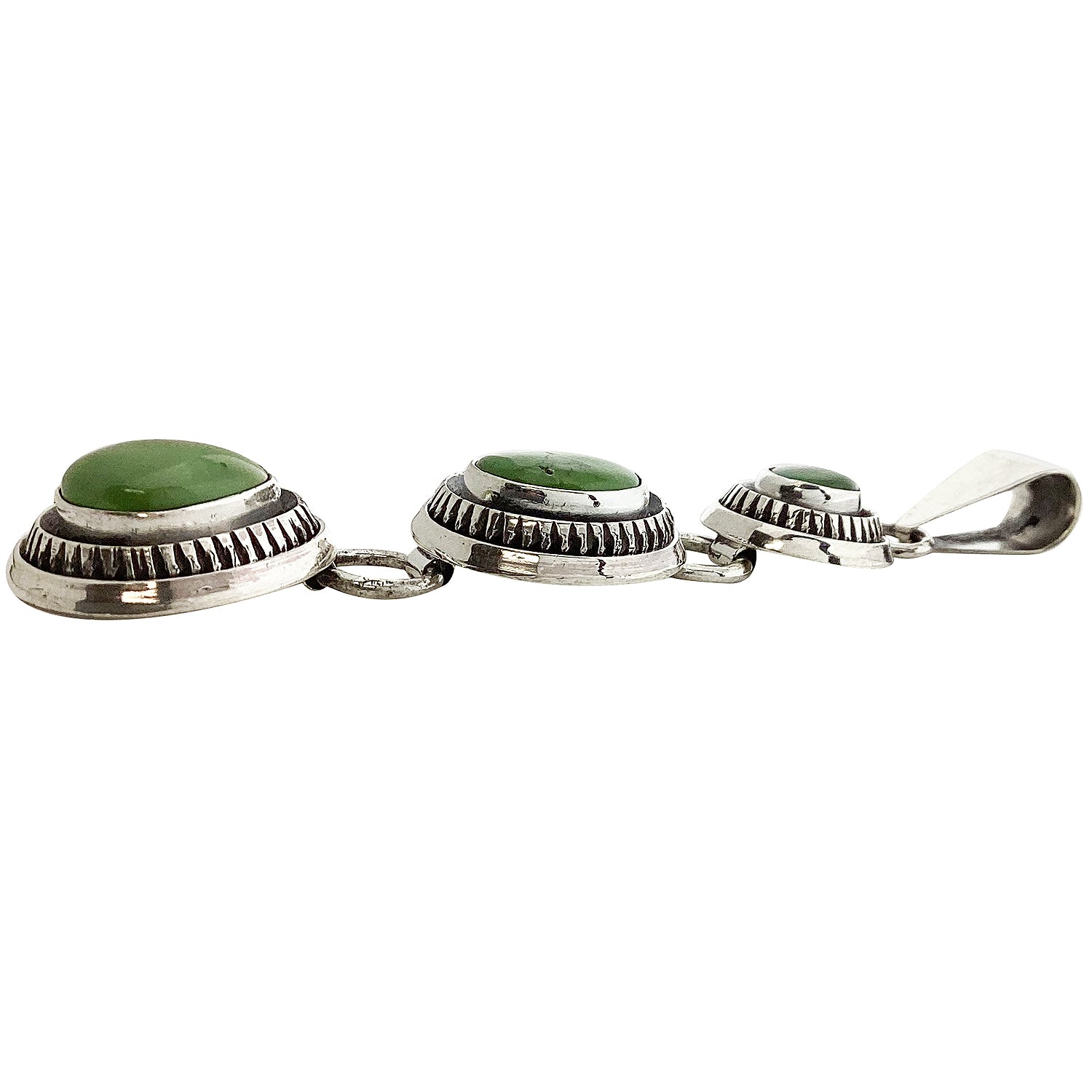 Leonard Nez, Pendant, Gaspeite, Three Stones, Silver, Navajo Handmade, 3 5/8"