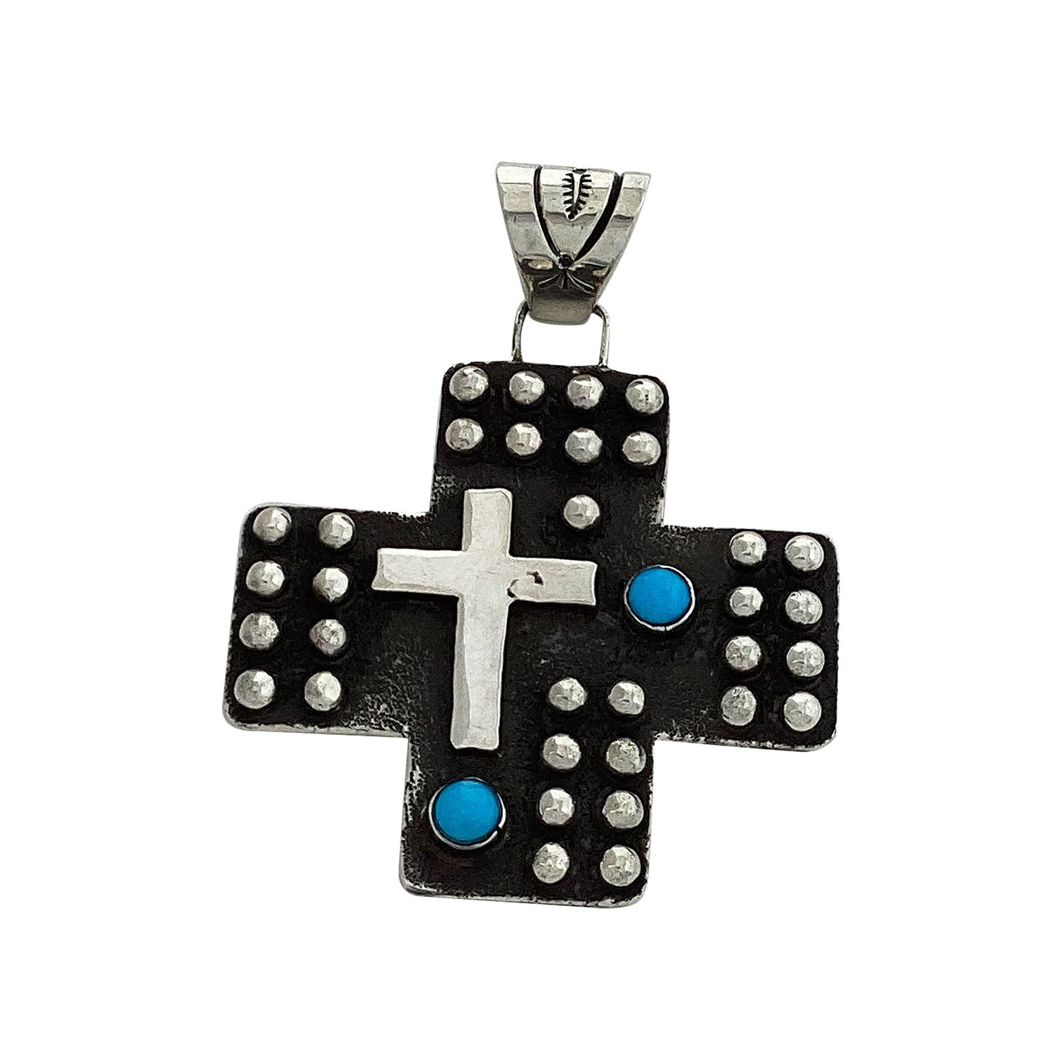 Ernest Rangel, Pendant, Cross, Kingman, Navajo Handmade, 2 1/2"