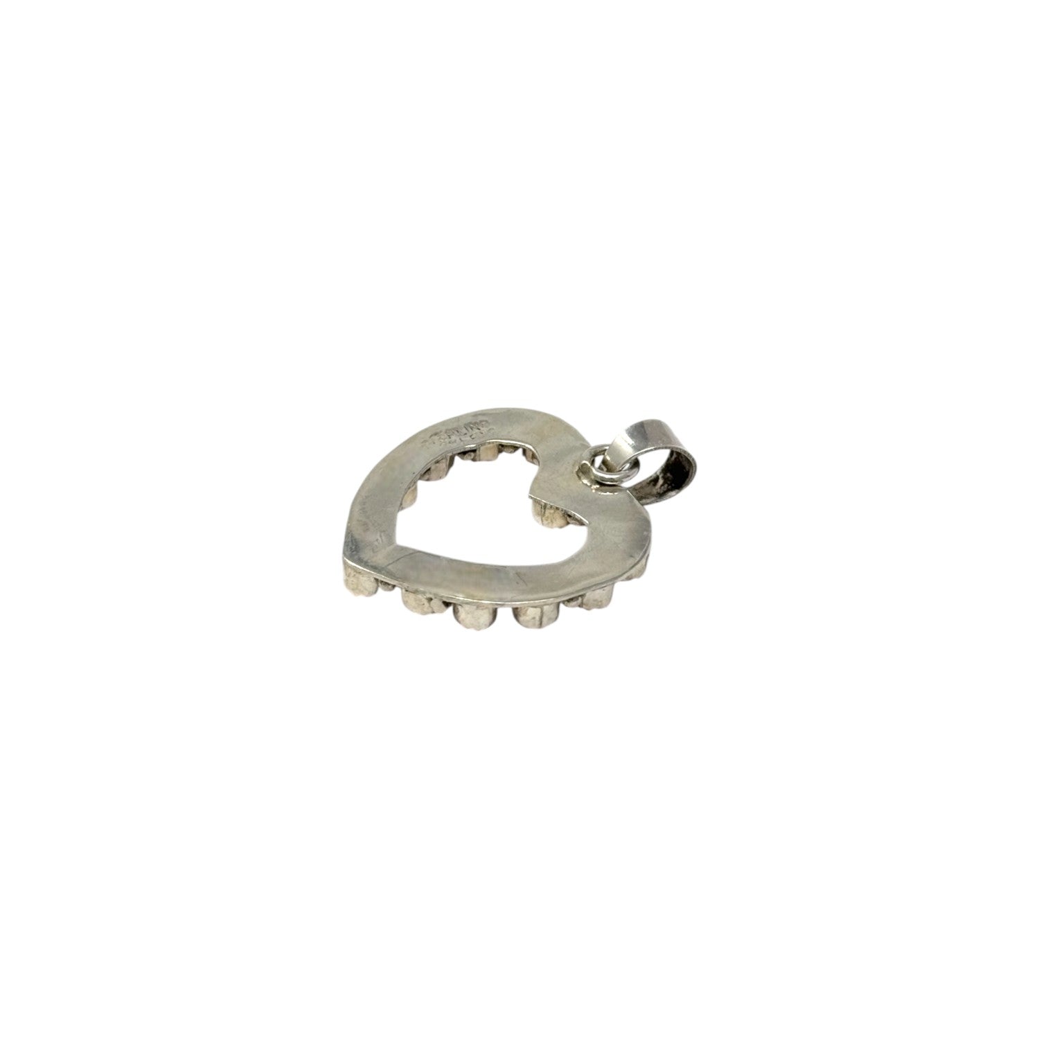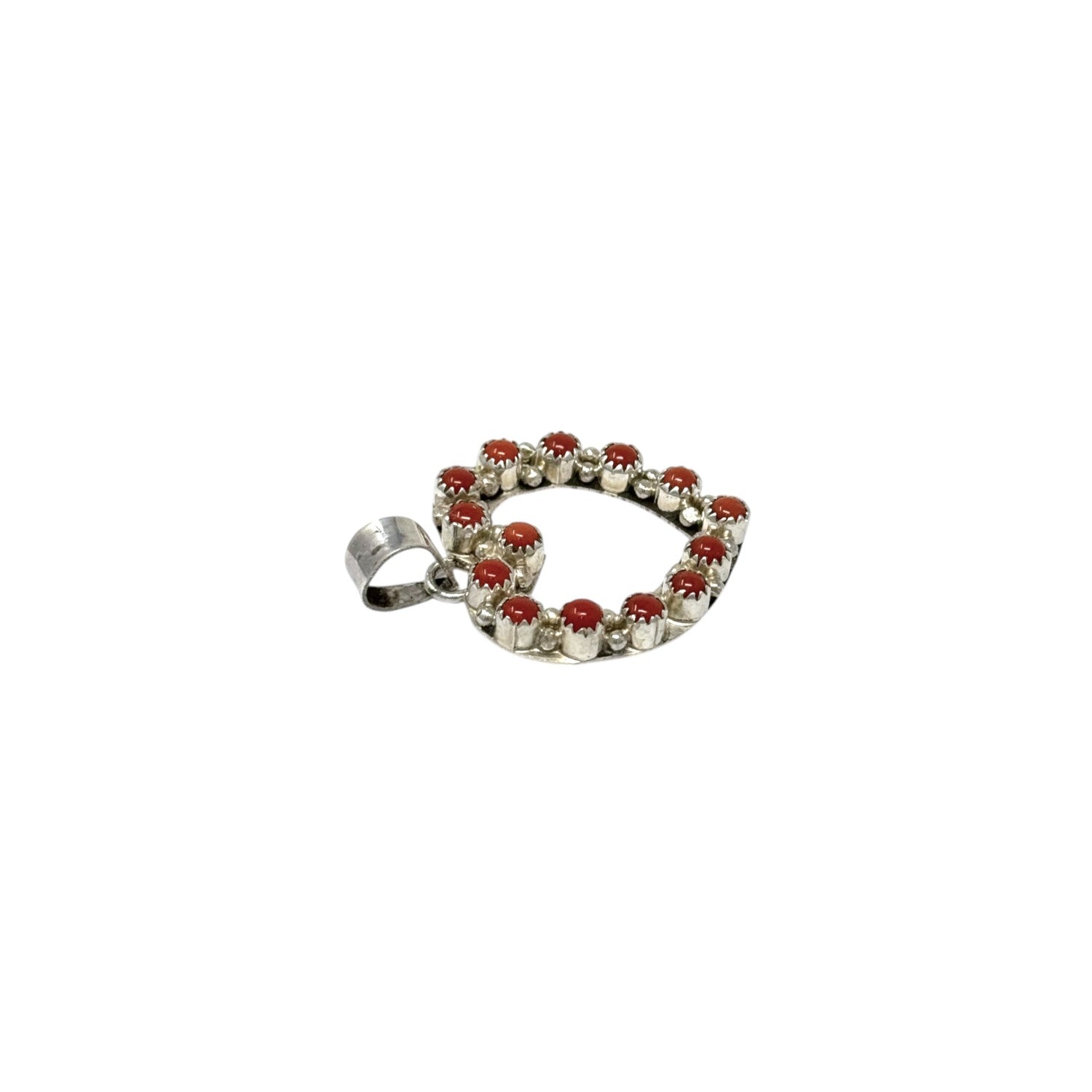 This Navajo handmade pendant by Scotty Skeets captures heartfelt beauty with a vibrant splash of tradition. Delicately shaped into an open heart, the design is adorned with rich red coral stones, each handset in fine sterling silver bezels. The coral symbolizes life force and protection, adding deeper meaning to this romantic silhouette. Ornate silverwork surrounds each stone, lending texture and dimension to the graceful form. Lightweight yet striking, it’s a versatile piece that pairs beautifully with both casual and formal attire.