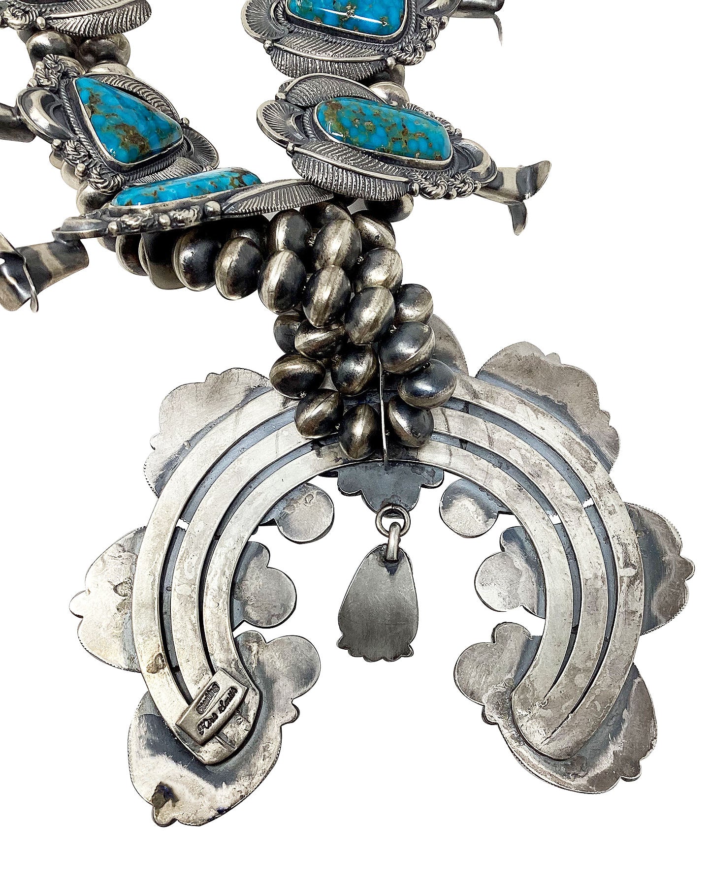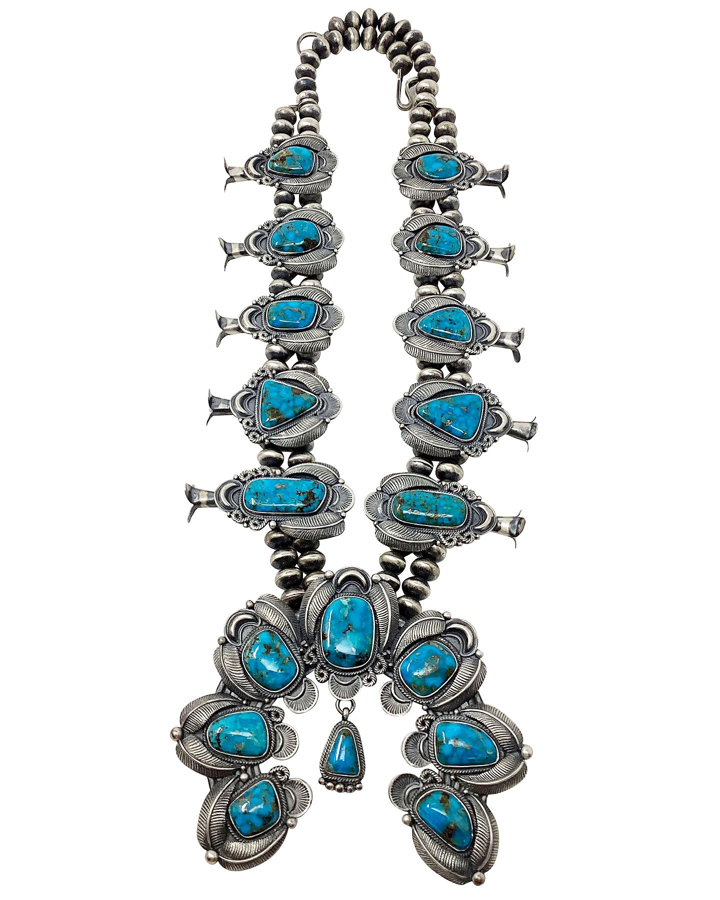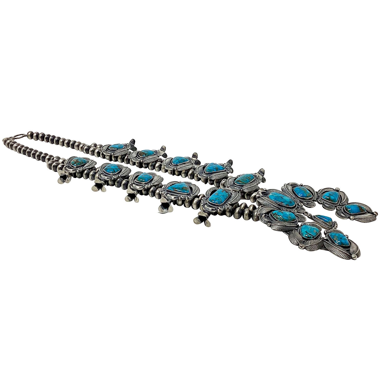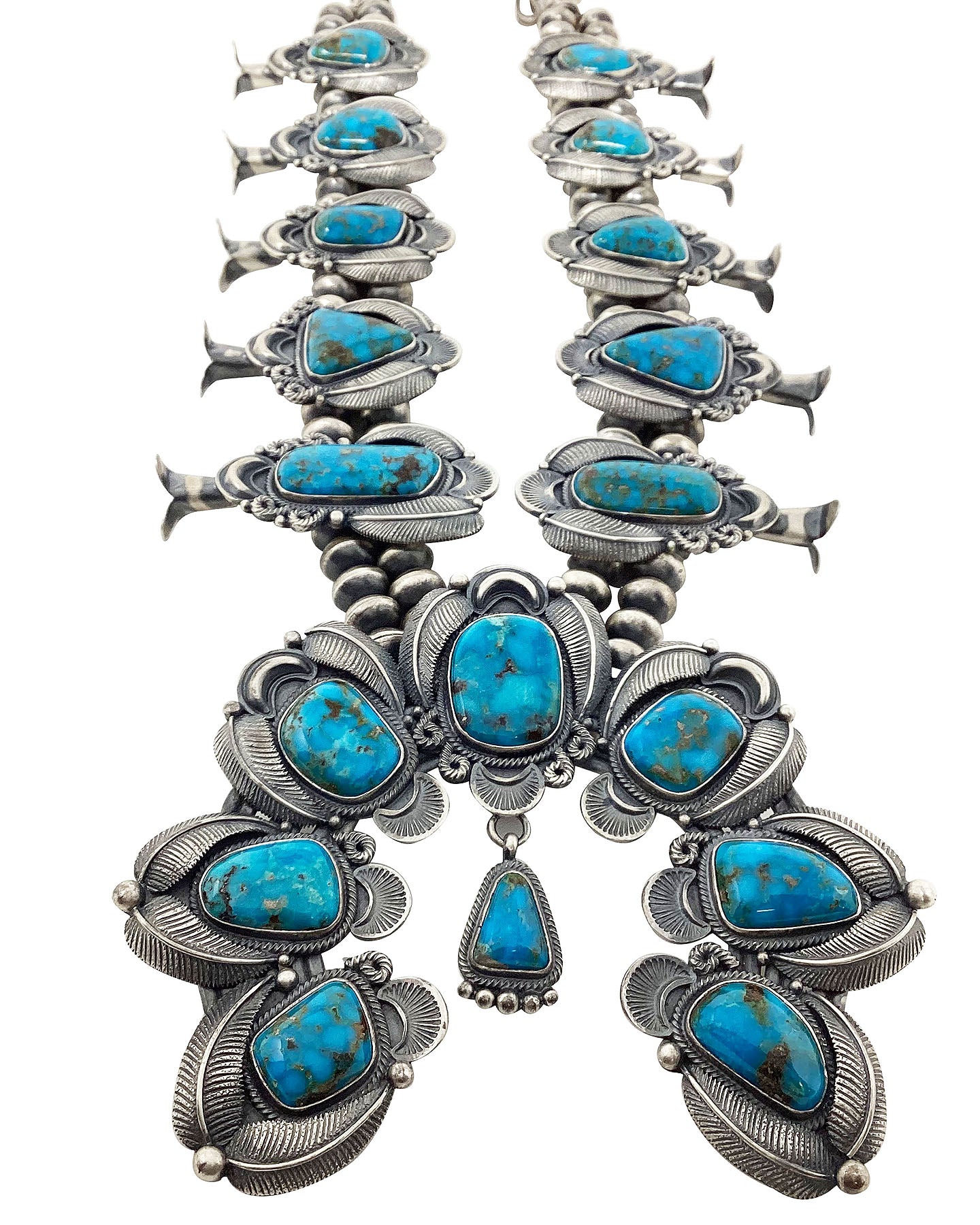 Kirk Smith, Squash Blossom Necklace, Kingman Turquoise, Circa 2000s, 27"