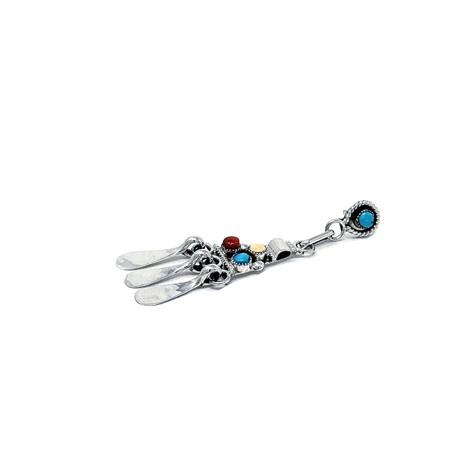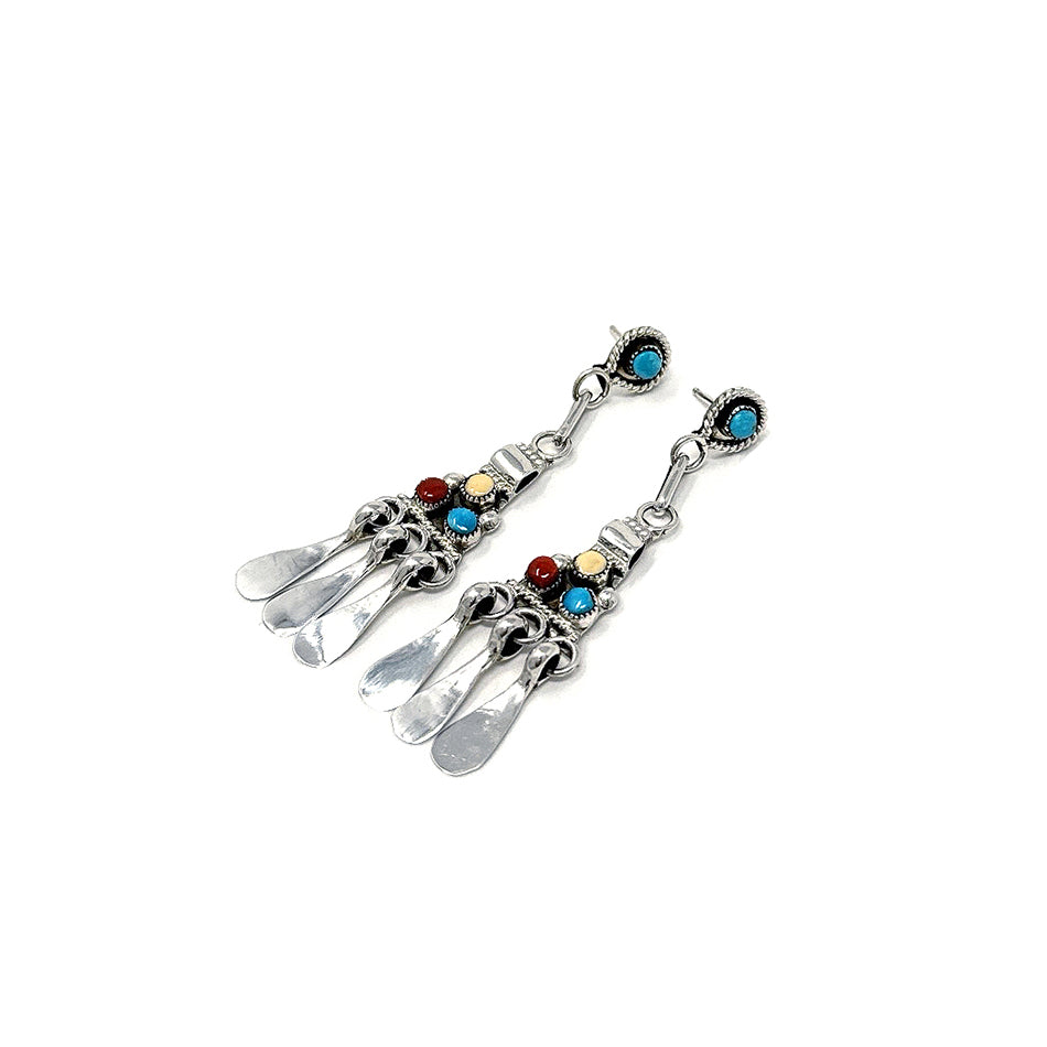 Dan Etsate, Earring, Multi-Stone, Sterling Silver, Zuni, 2 1/4"