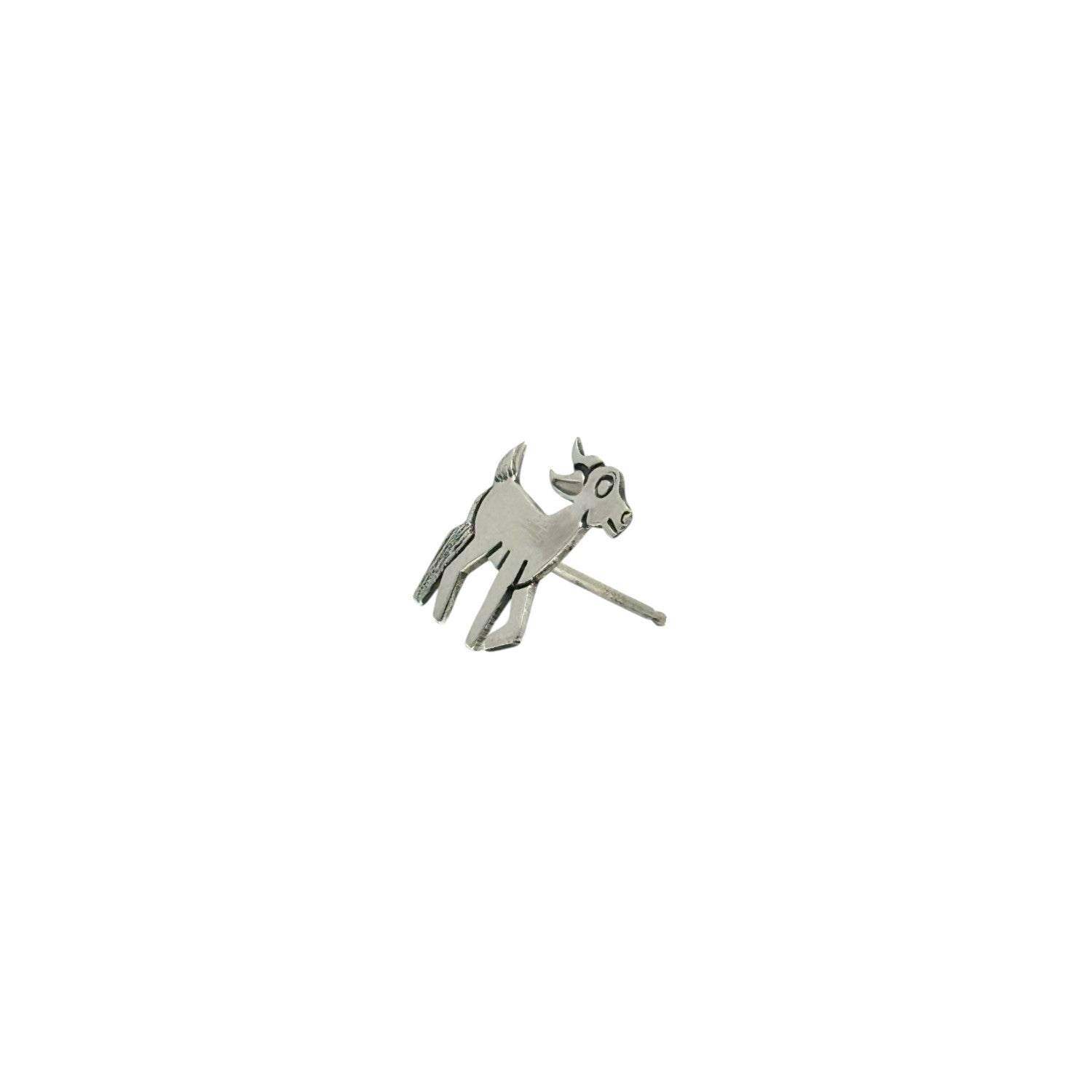 These charming earrings by Navajo artist Zandra Tahy are handcrafted in sterling silver and shaped in the form of playful goats, celebrating the spirit of the Southwest. Each earring captures delightful movement and personality, with finely stamped details highlighting their expressive faces, curved horns, and textured tails. Their whimsical design honors the close connection between Navajo life and livestock, especially the role of goats in traditional herding culture. Made entirely by hand, these earrings reflect both cultural storytelling and artisan precision. Lightweight and full of character, they are perfect for adding a unique, meaningful accent to your everyday wear.