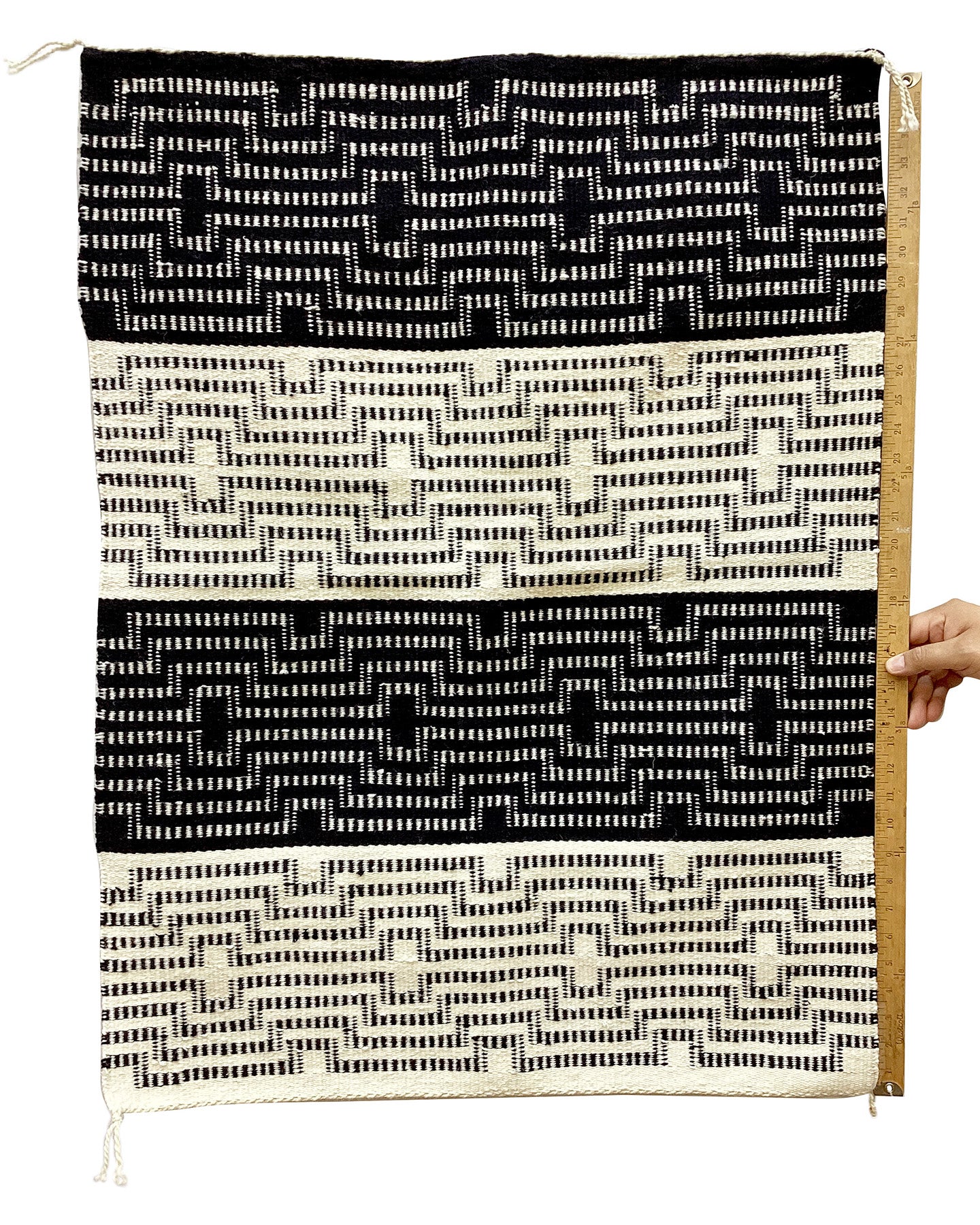 Traders like JB Moore would be the first to introduce the art of the Navajo to collectors back east, but it was rugs (not silver) that first captured the imaginations collectors and decorators. Following Moore's suit, other traders would begin to market Navajo weaving, even influencing many of the well-known styles. Today styles are not defined by regions but perfected by dedicated weavers from all parts of the Navajo Nations. We have put together a large collection of rugs on our online Trading Post and hope you take time to look through them all. Hopefully, you will find the perfect rug. Navajo weaver Veronica Yazzie made this gorgeous New Lands rug. This is a newer style that comes from the New Lands area near Sanders, AZ. It draws from a few different styles, but the raised weave is definitely its own. Like many other patterns this one has evolved over the years and comes in many different colors and patterns. Trader Bruce Burnham is credited with its development.