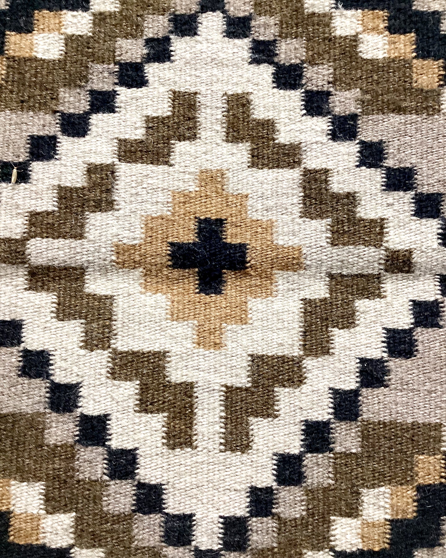 The favorite weaving for many collectors is the Two Grey Hills. Famous because of the natural sheep colors and the stiff feel of churro wool. Many Two Grey Hills will have very complex patterns, and it takes a significant amount of time to realize all of the hidden symbols. Patterned after the classic Diamond designs this is definitely a style you need in your growing collection of rugs.