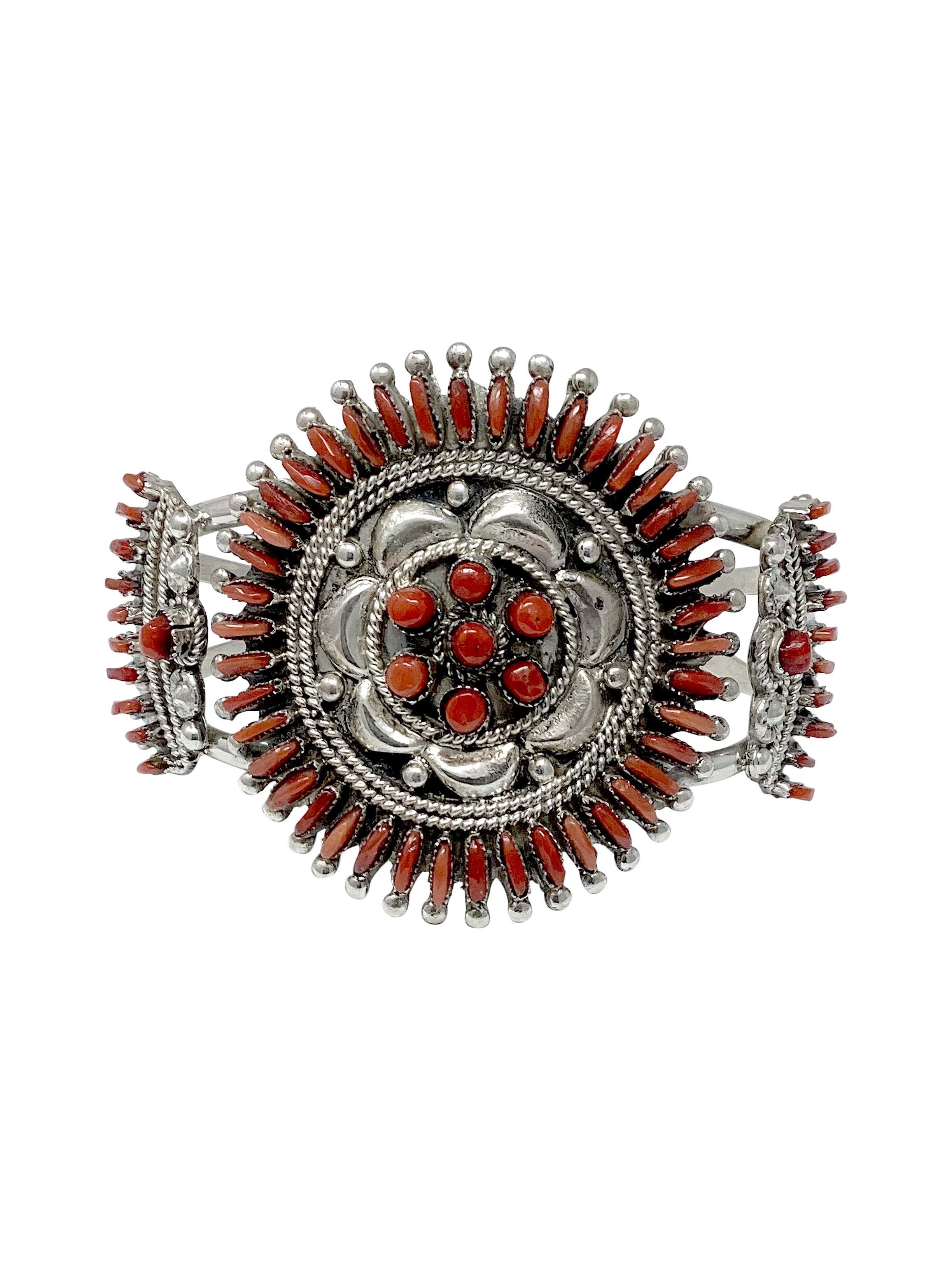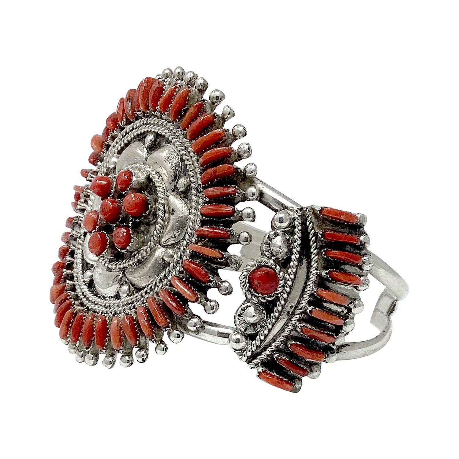 Eva Wyaco, Bracelet, Coral, Sterling Silver, Zuni, 6 1/2"