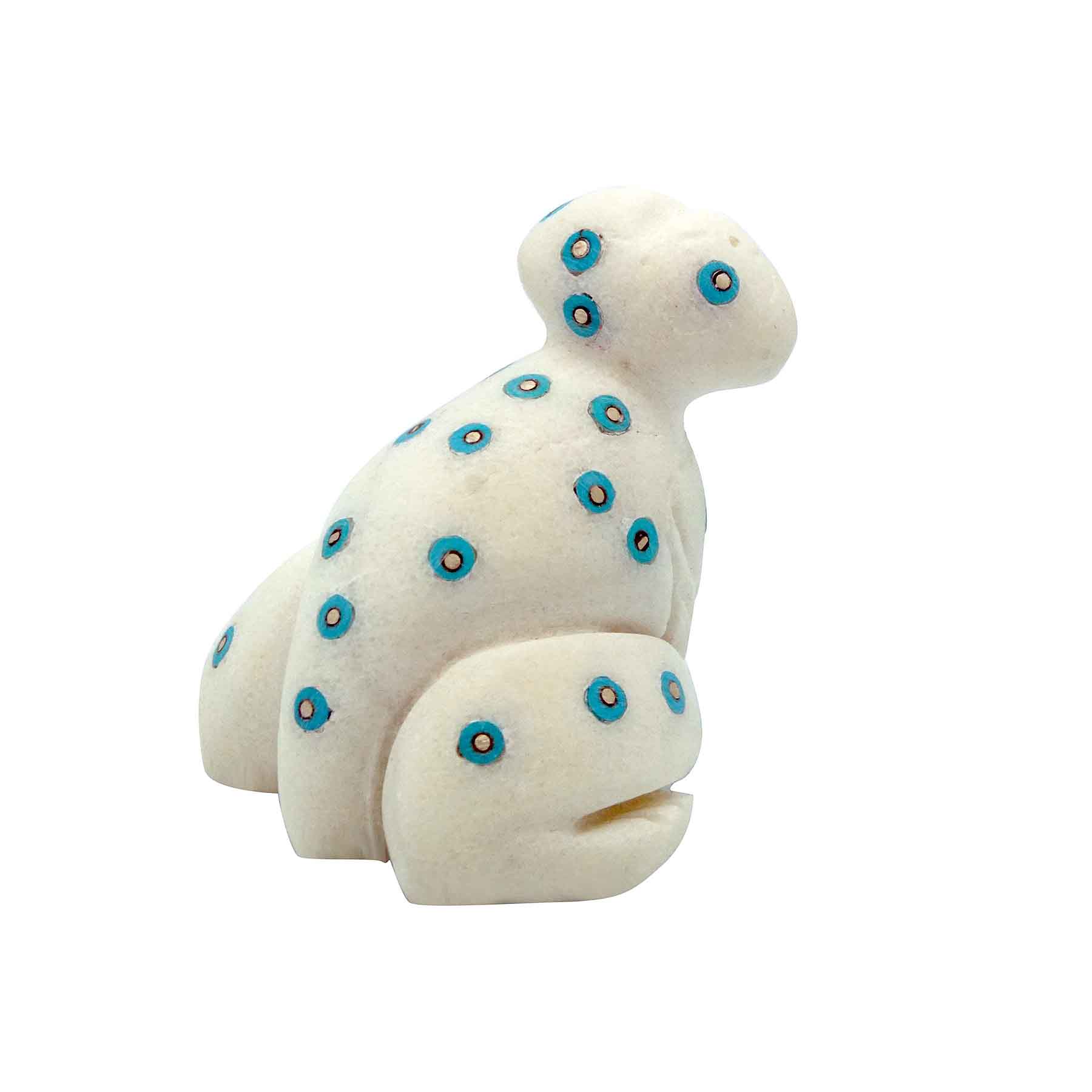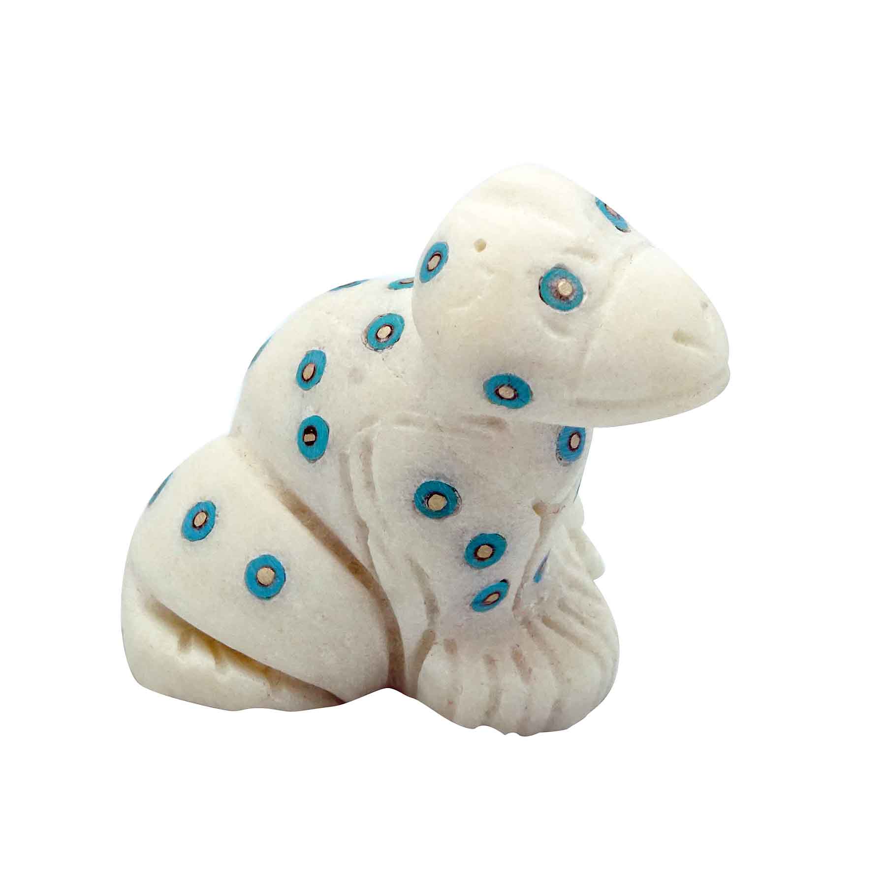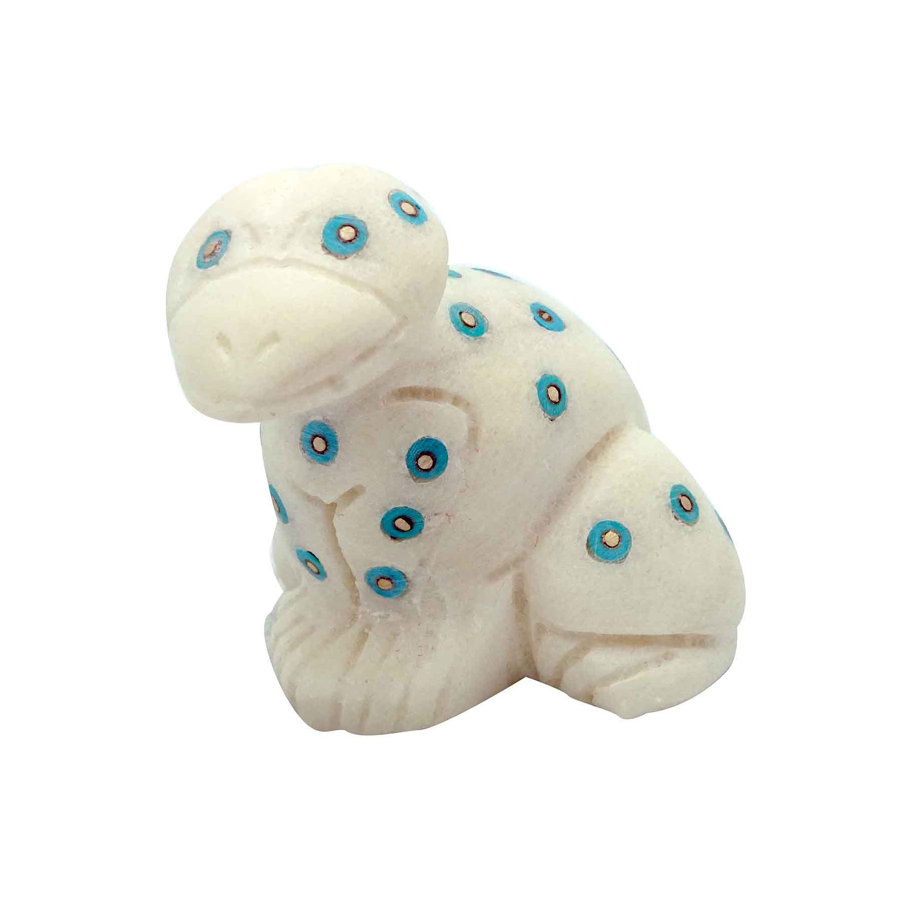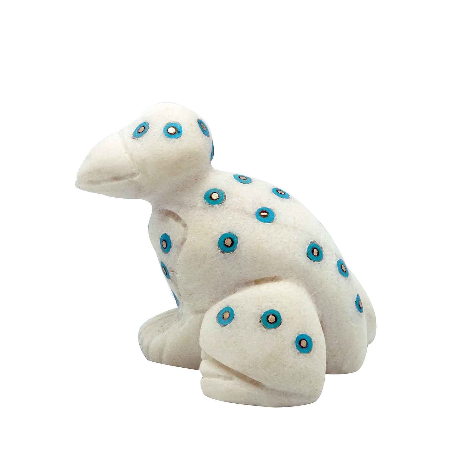 Zuni Hand Carved Fetish, Frog, Marble, Turquoise, 2 1/2" x 2"