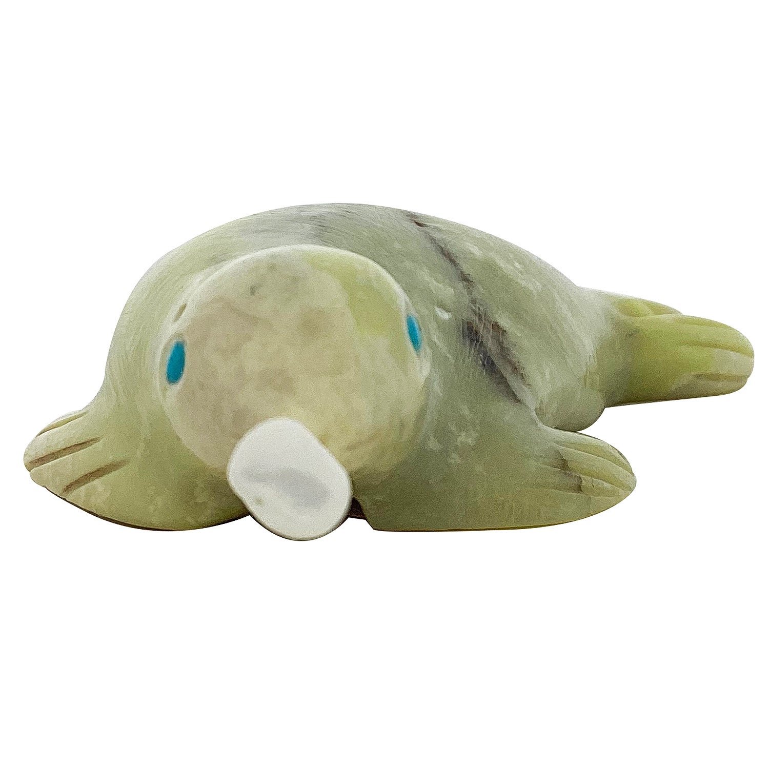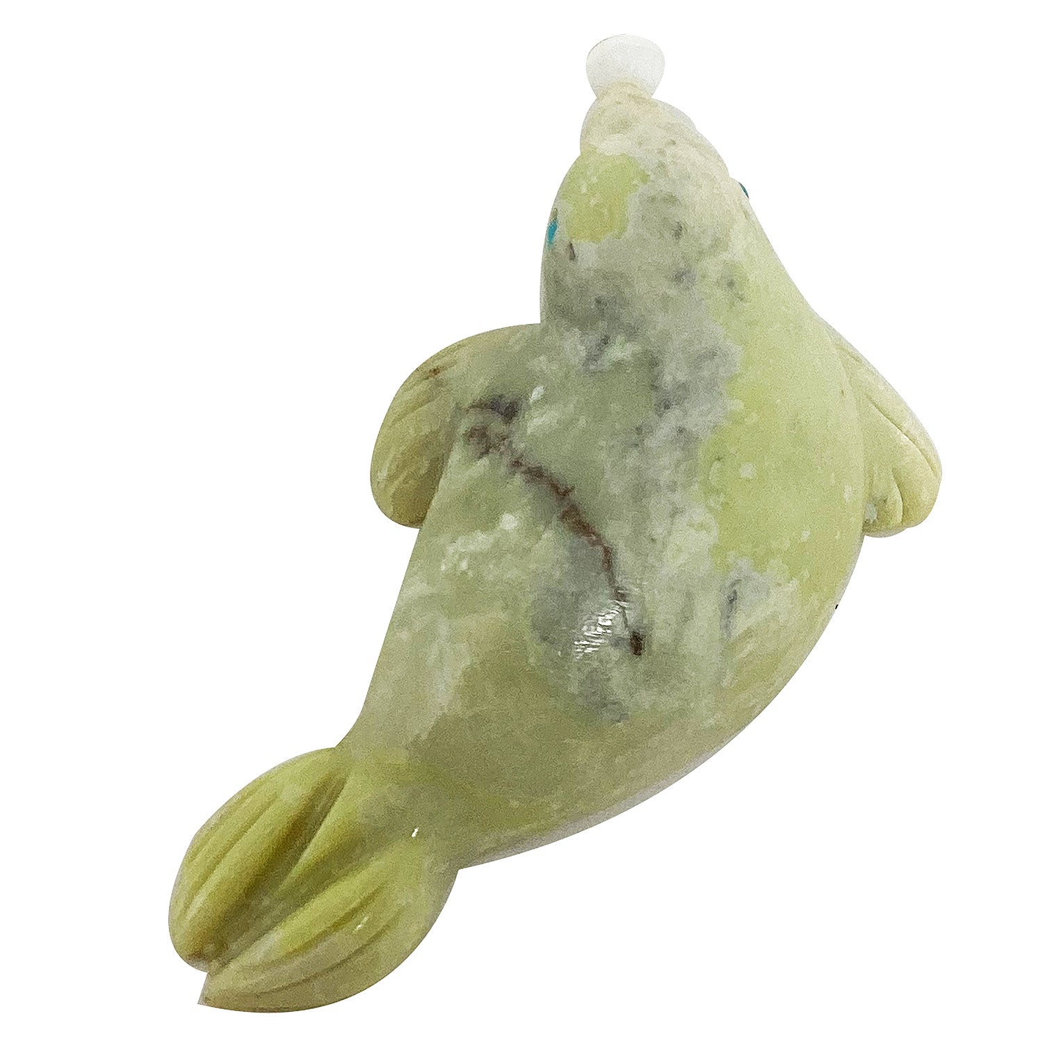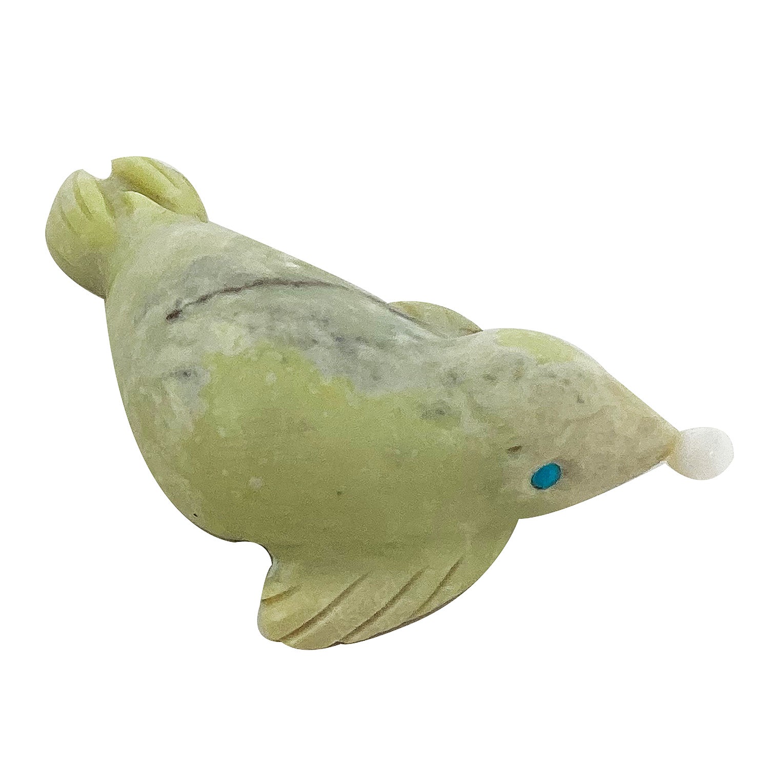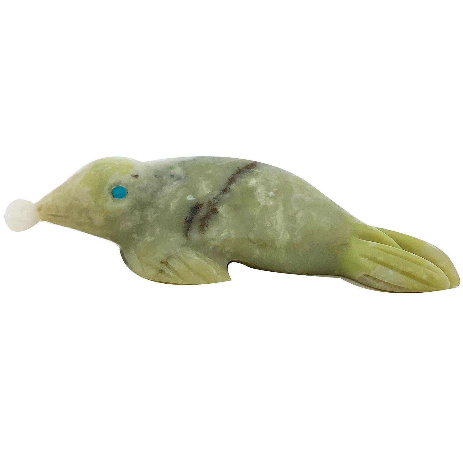 Karen Zunie, Seal Fetish, Serpentine, Zuni Handmade, 1/2" x 2 3/8”