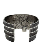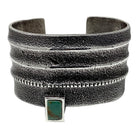 Navajo artist Aaron Anderson created this unique three raised line bracelet with Fox Turquoise. It is big, heavy, and beautiful. Aaron attached a small off centered Fox Turquoise stone to the top of the bracelet. The design is held together by the full center plate which gives the cuff this unique look. We get to see lots of art from this award-winning artist, and I believe this is the first time we have seen this look. Plus, this bracelet is big for some of those hard-to-find wrist sizes. The rustic brushed finish of the silver gives you this great Southwest piece, one that makes an amazing weekend bracelet. Check out the online Trading Post for more of Aaron’s creative work.