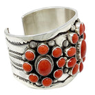 Aaron Toadlena, Cluster Bracelet, Mediterranean Coral, Navajo Handmade, 6 3/4"
