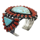 Anthony Skeets, Bracelet, Cluster, Kingman Turquoise, Coral, Navajo Made, 6 5/8"