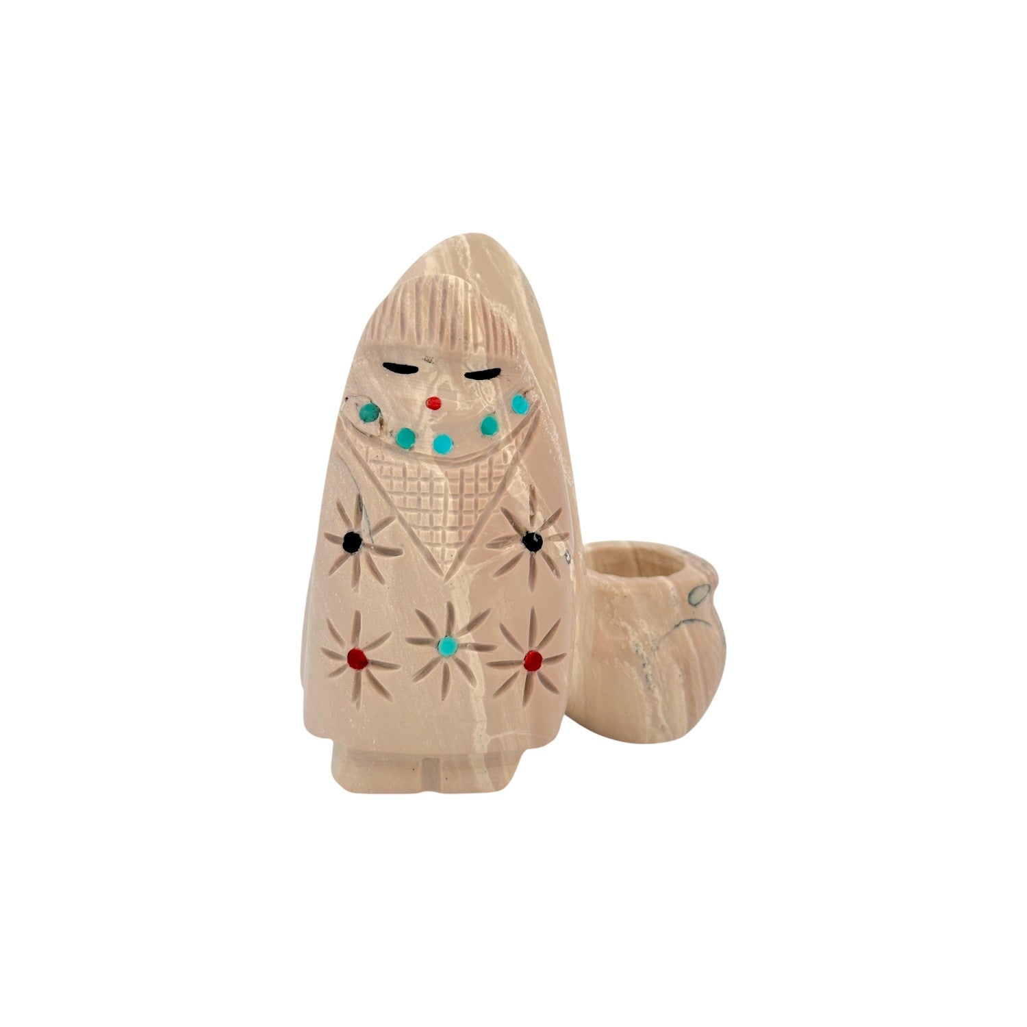 Todd Etsate, Fetish, Corn Maiden, Alabaster, Zuni Hand-Carved, 2 3/4"