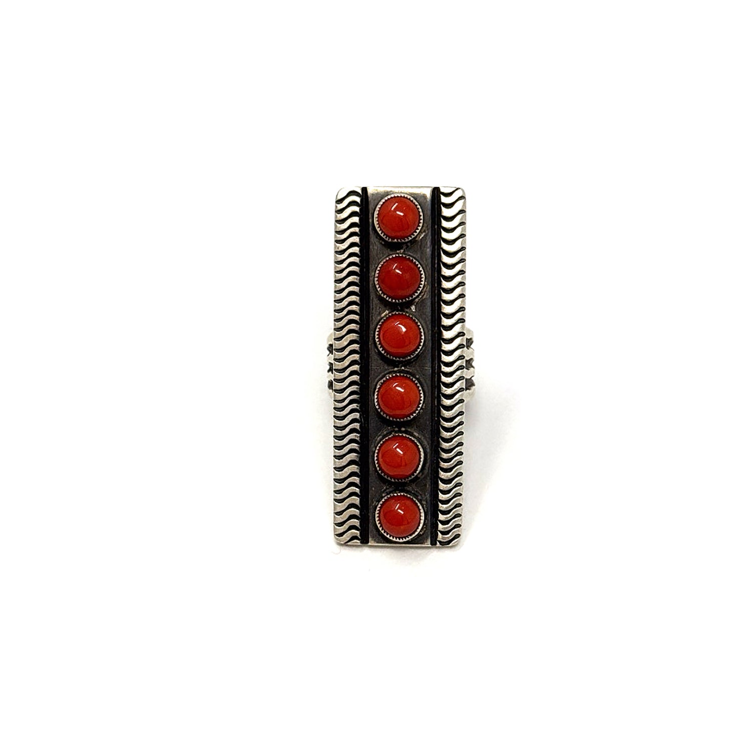 Calvin Martinez, Ring, Coral, Sterling Silver, Navajo, 8 1/2