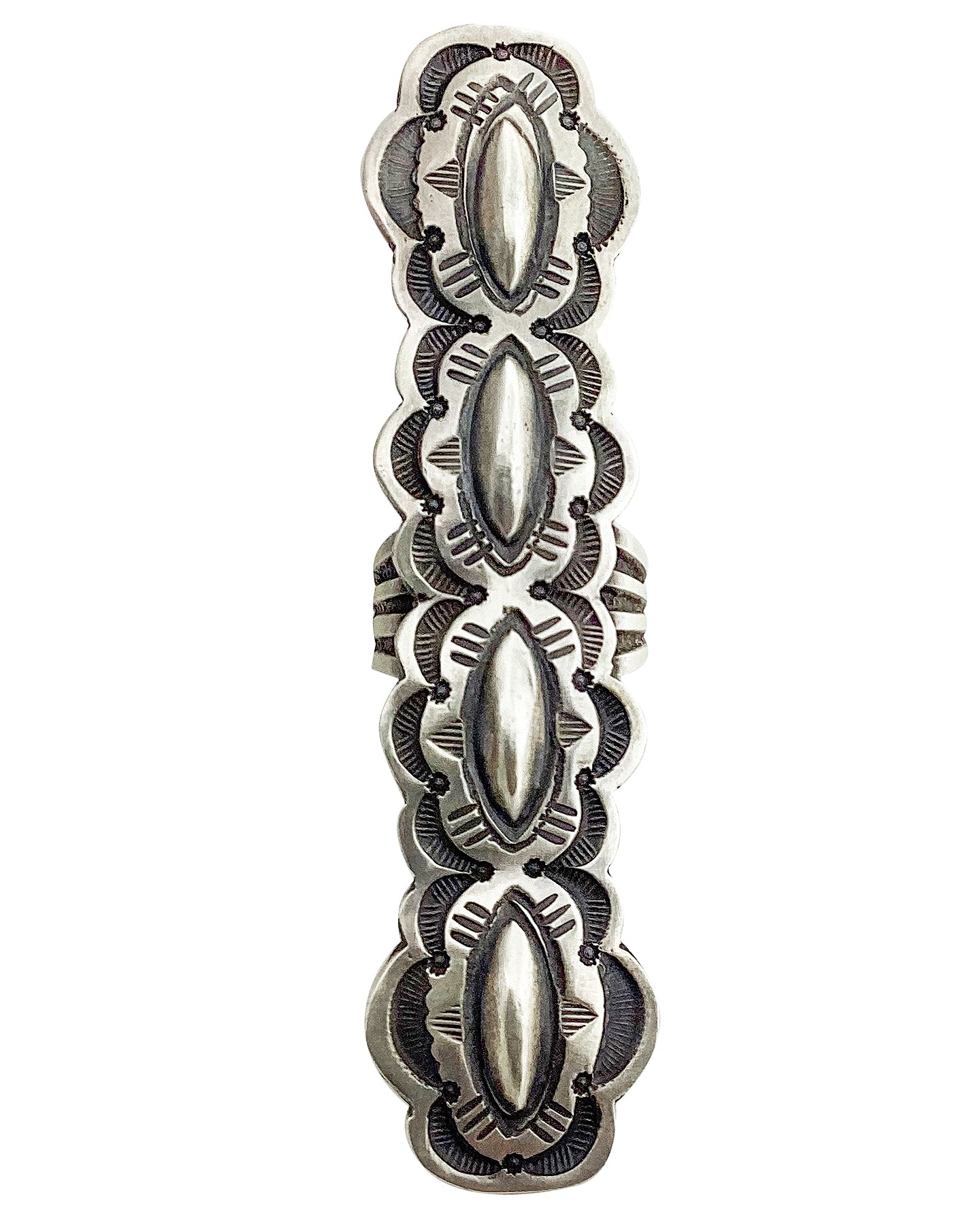 Calvin Martinez, Ring, Stamping, Sterling Silver, Navajo Handmade, 8 1/2
