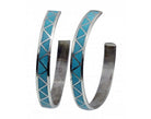 These earrings are absolutely stunning. The big hoops are Zuni handmade and are a creation of talented artist Claudine Haloo. She uses quality materials to make into the fascinating channel inlay hoops. These earrings will show big and beautifully and will become your favorites. We have put several different colors up by Claudine, so make sure you look through the online Trading Post collection.