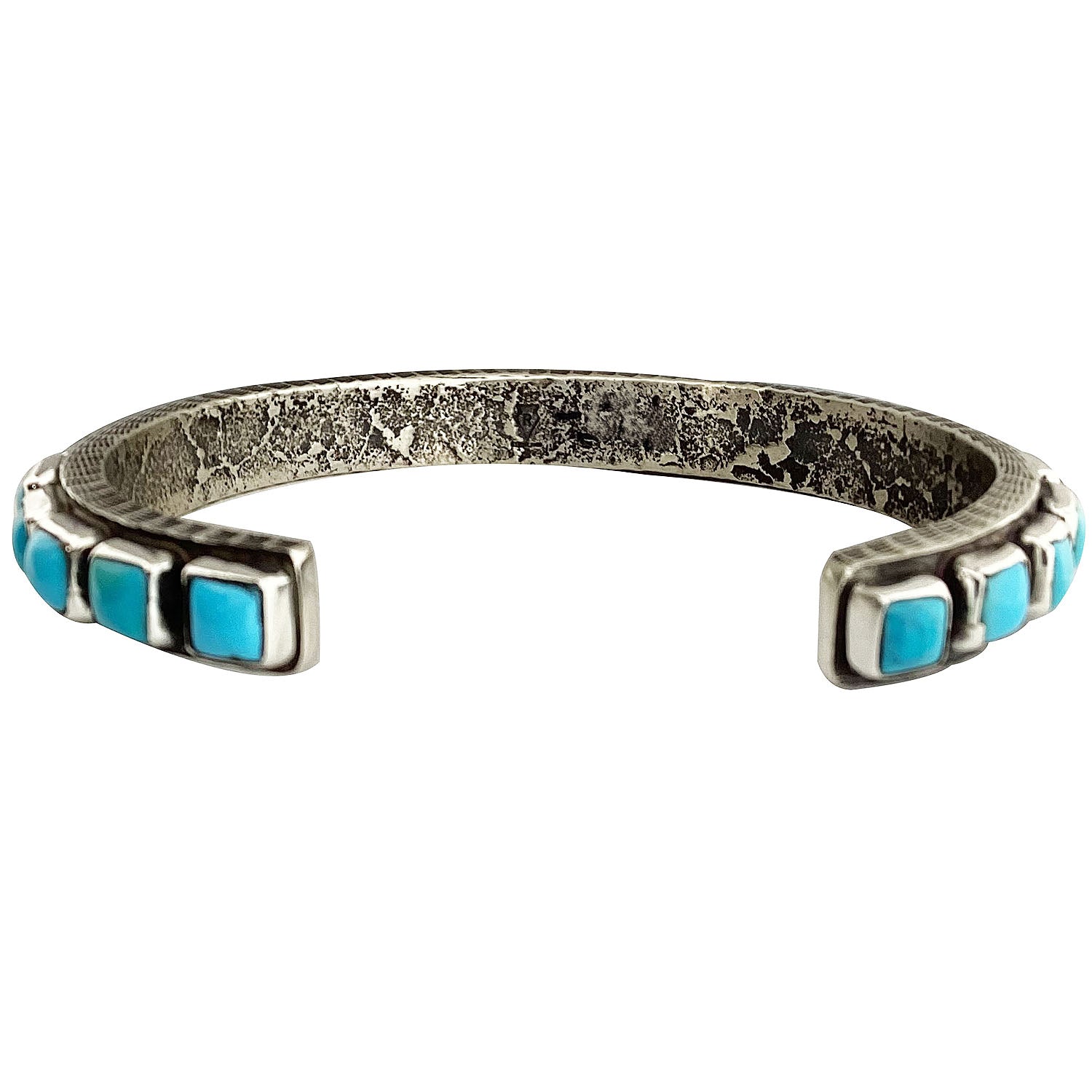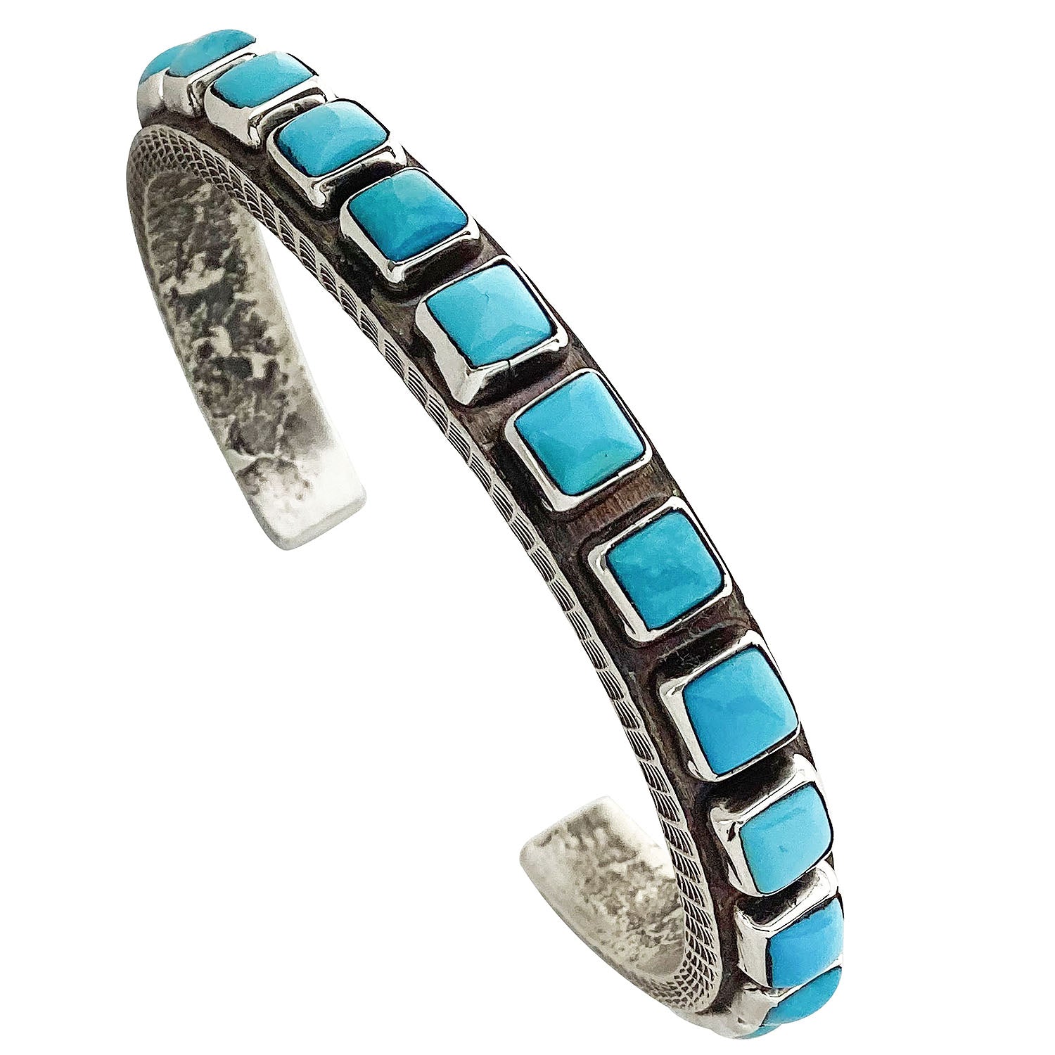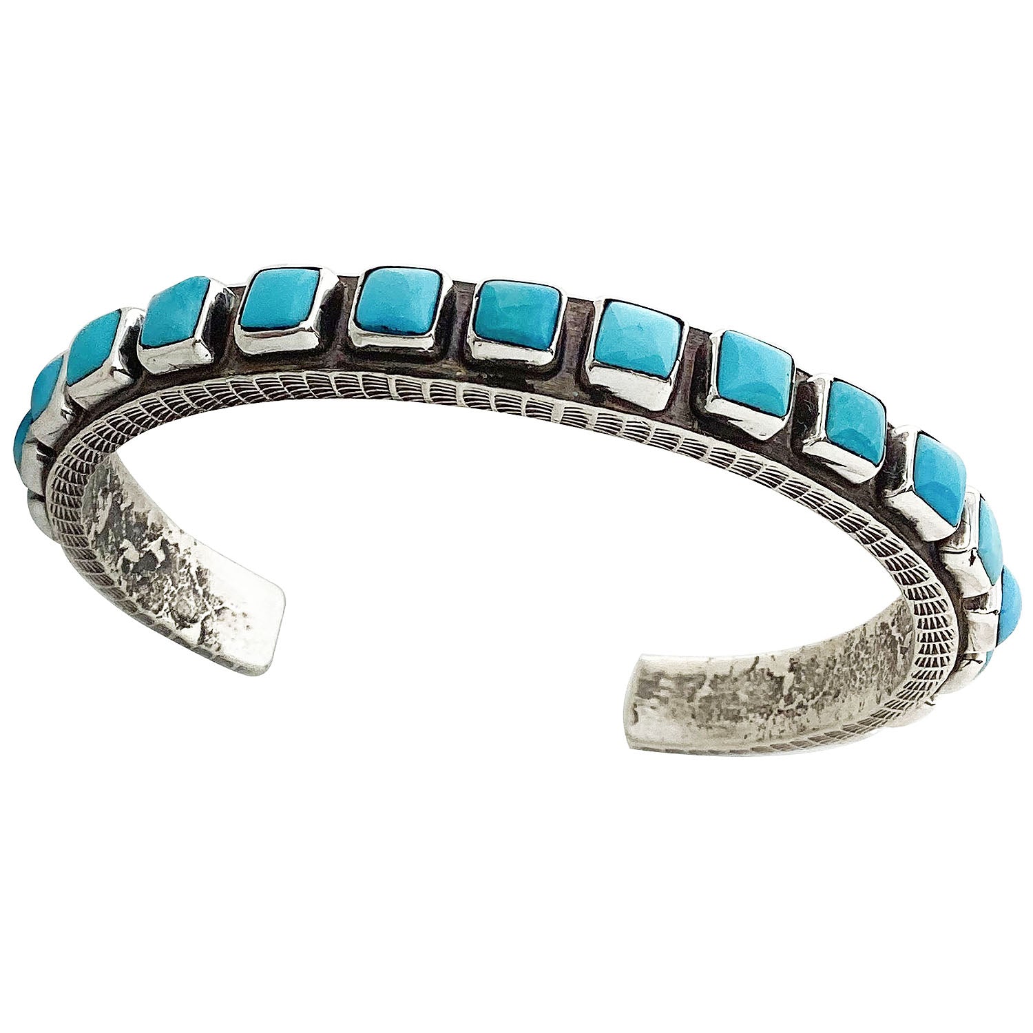 Ernest Rangel, Bracelet, Squares, Kingman Turquoise, Navajo Handmade 6 1/2"
