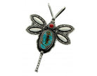 Herman Smith, Pin, Pendant, Dragonfly, Turquoise, Coral, Navajo Handmade, 3.25
