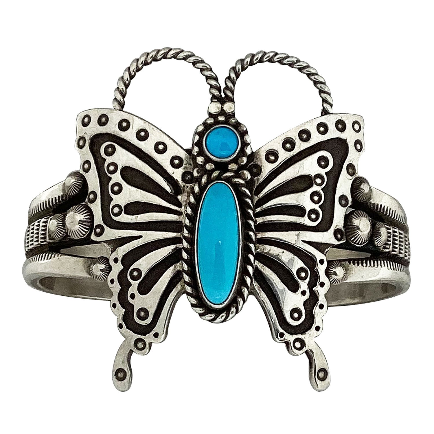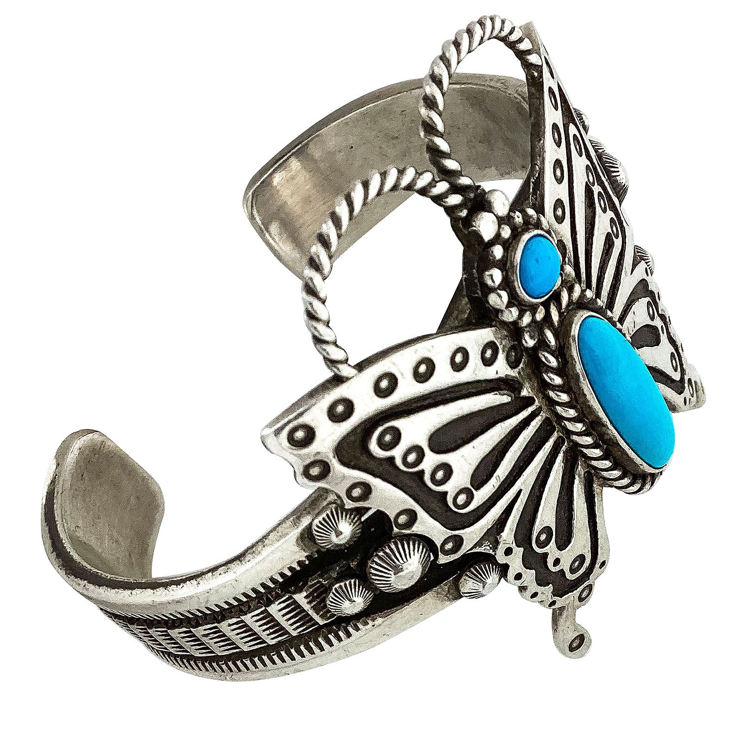 Herman Smith, Bracelet, Butterfly, Kingman Turquoise, Navajo Handmade, 6 3/8"