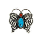 Herman Smith, Pin, Pendant, Kingman Turquoise, Coral, Butterfly, Navajo, 2 1/4"