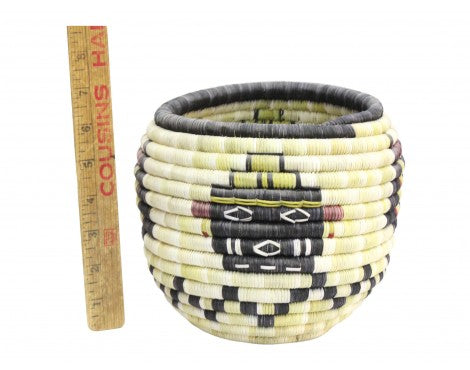Hopi coil basket weaving isn't something you learn overnight. All of the weavers we have baskets from grew up in a house that wove baskets, something that was introduced to them from an early age. You will find these basket weavers on the Second Mesa. We have an interview with Irene Lamayaktewa who talked a little bit about the colors you find and the materials in coil basket."We make the coil basket from straw and yucca that we pick from areas around Hopi. Many of the colors are from the yucca plant, yellow comes from yucca being harvested in winter, the white is summer, and the green can be picked aany time of the year. Also, we will use sunflower for the black and Hopi Tea (hohocy) for the red."Make sure you look through our online collection. We have both baskets and plaques.