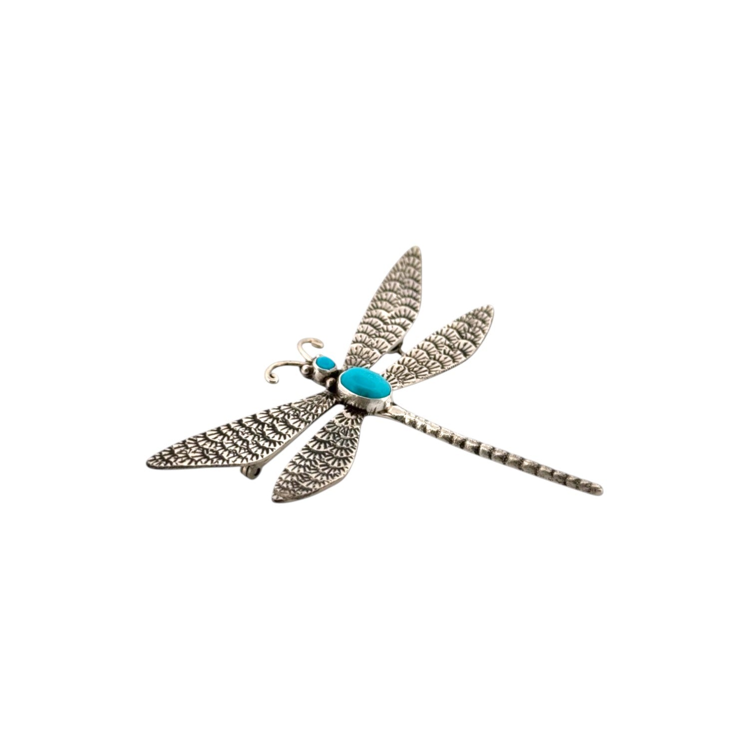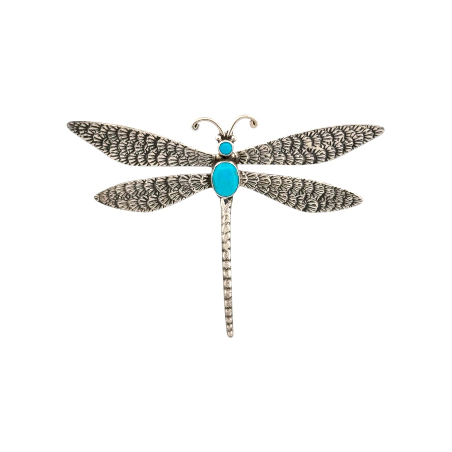 Lee Charley, Pin, Nevada Blue Turquoise, Sterling Silver, Navajo Handmade, 2"