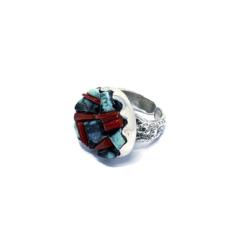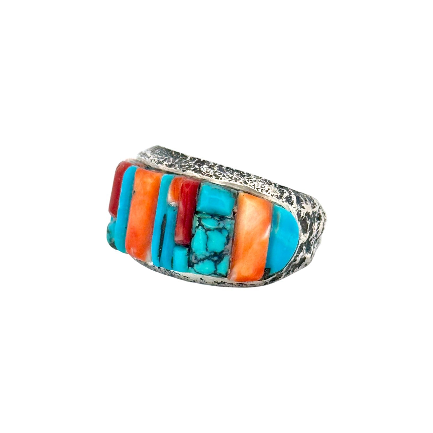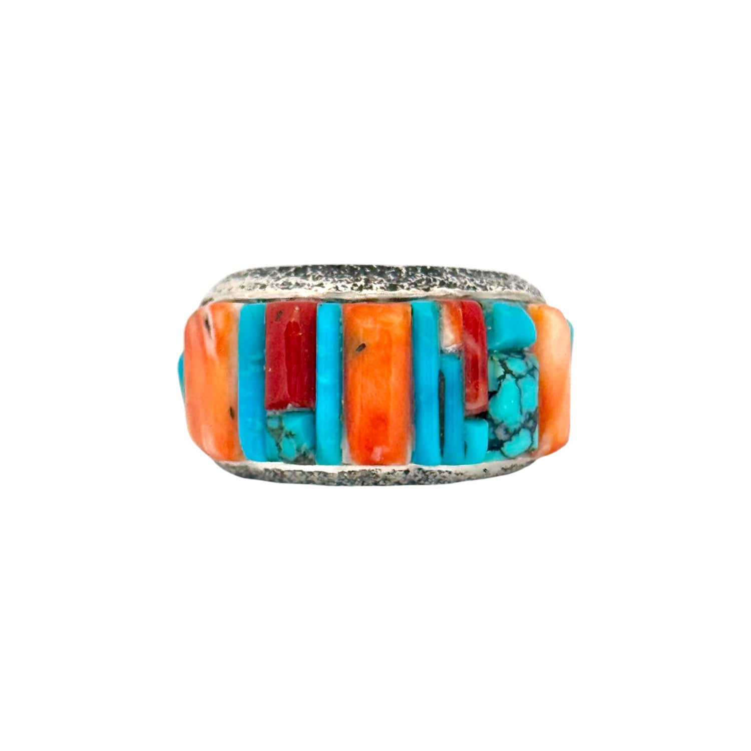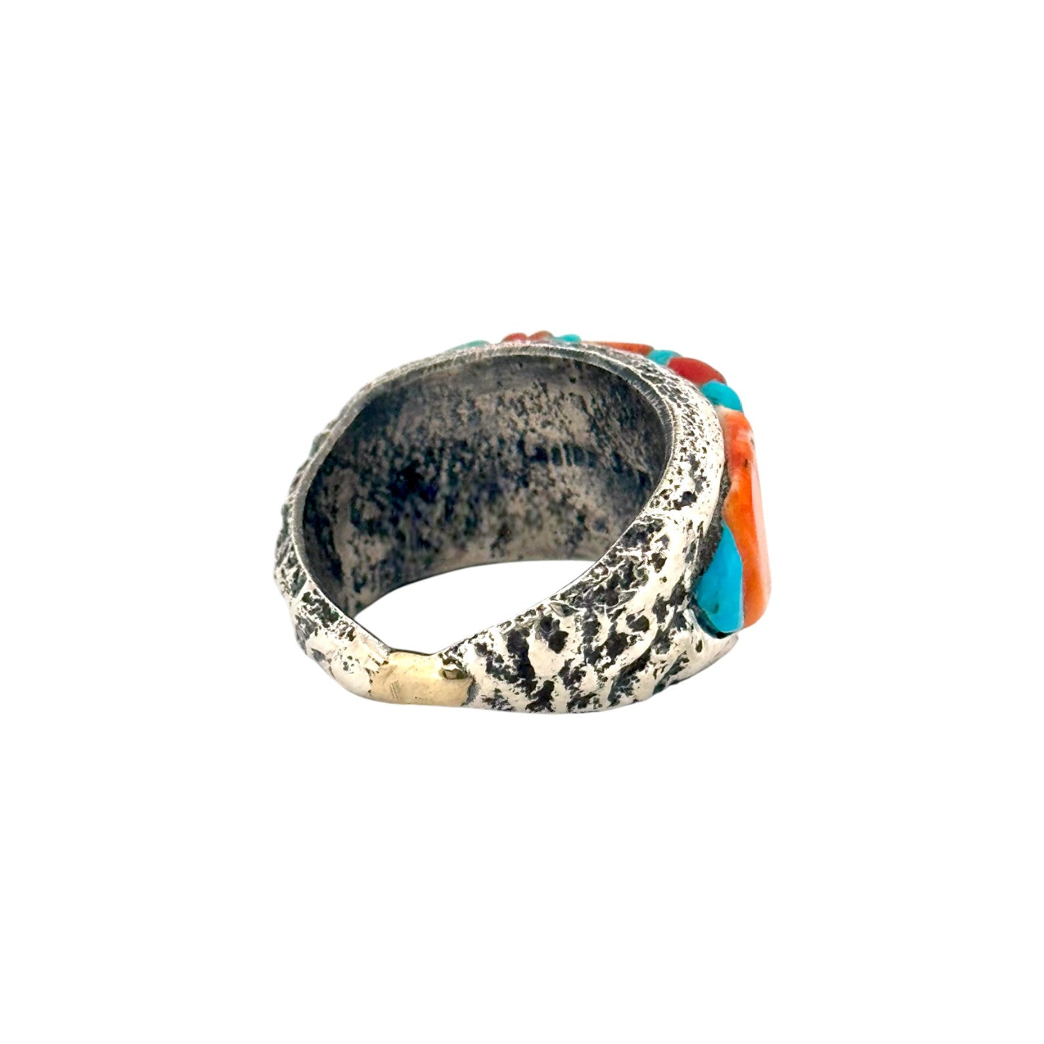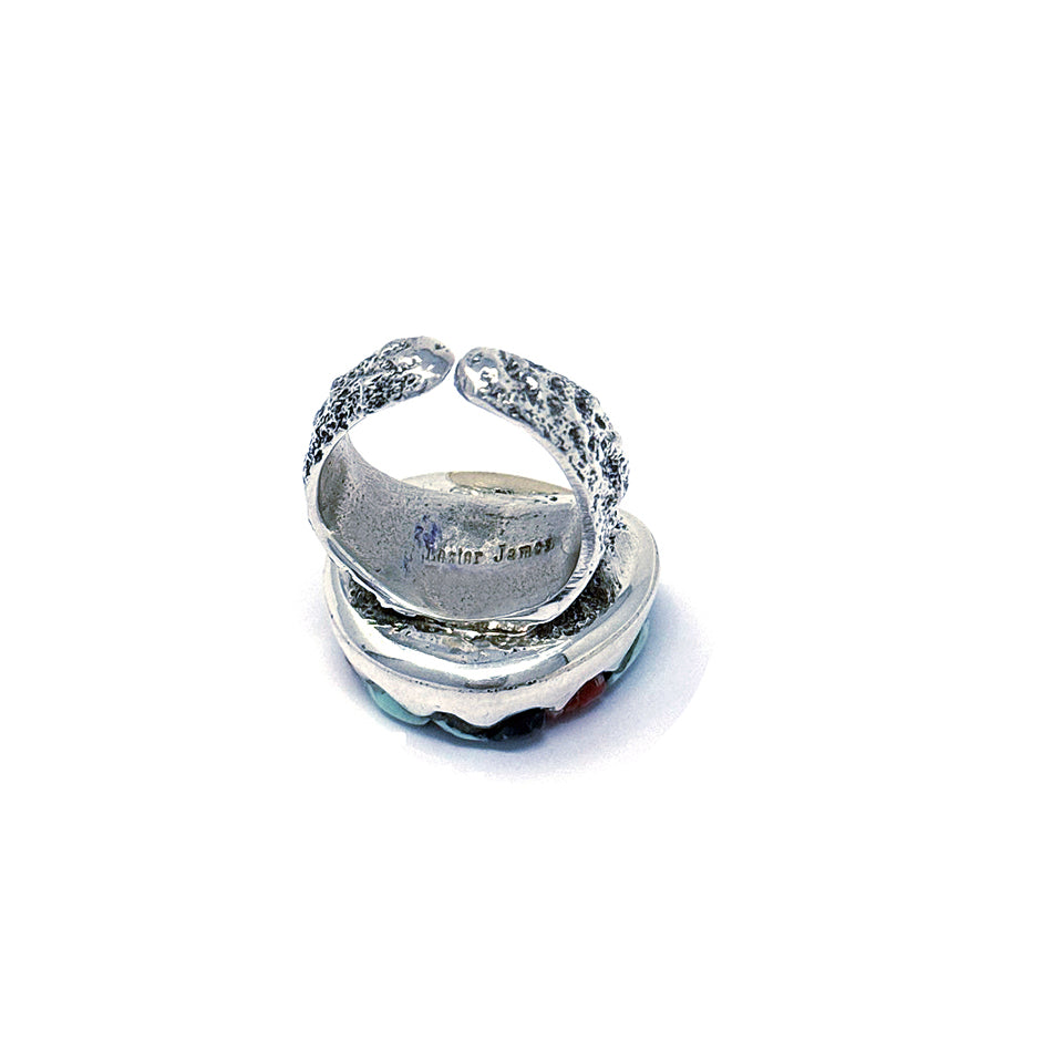 Lester James, Ring, Multi-Stone, Sterling Silver, Navajo Handmade, 8 1/2"