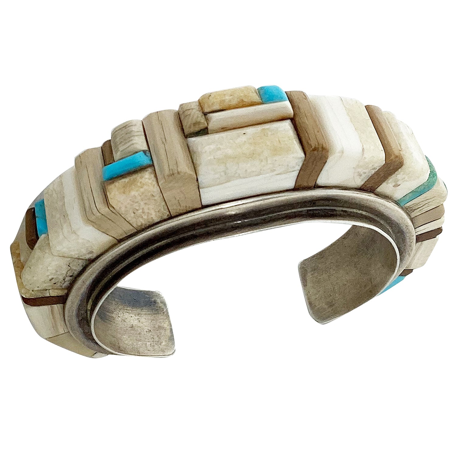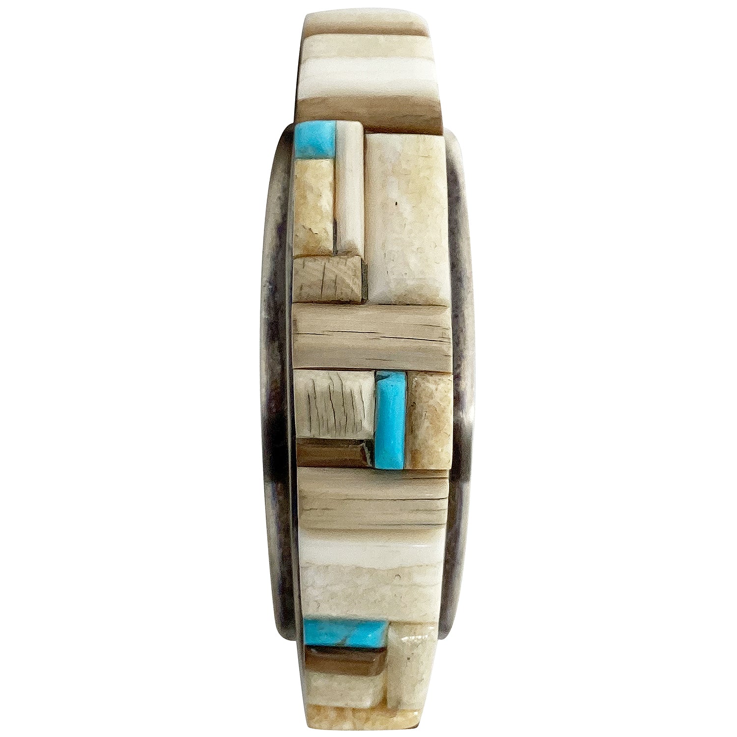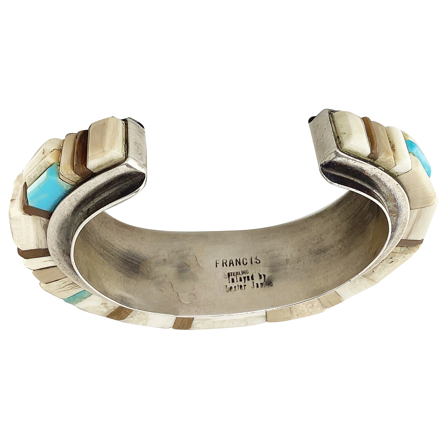 Lester James, Bracelet, Inlay, Iron Wood, Turquoise, Navajo Handmade, 6 3/4"