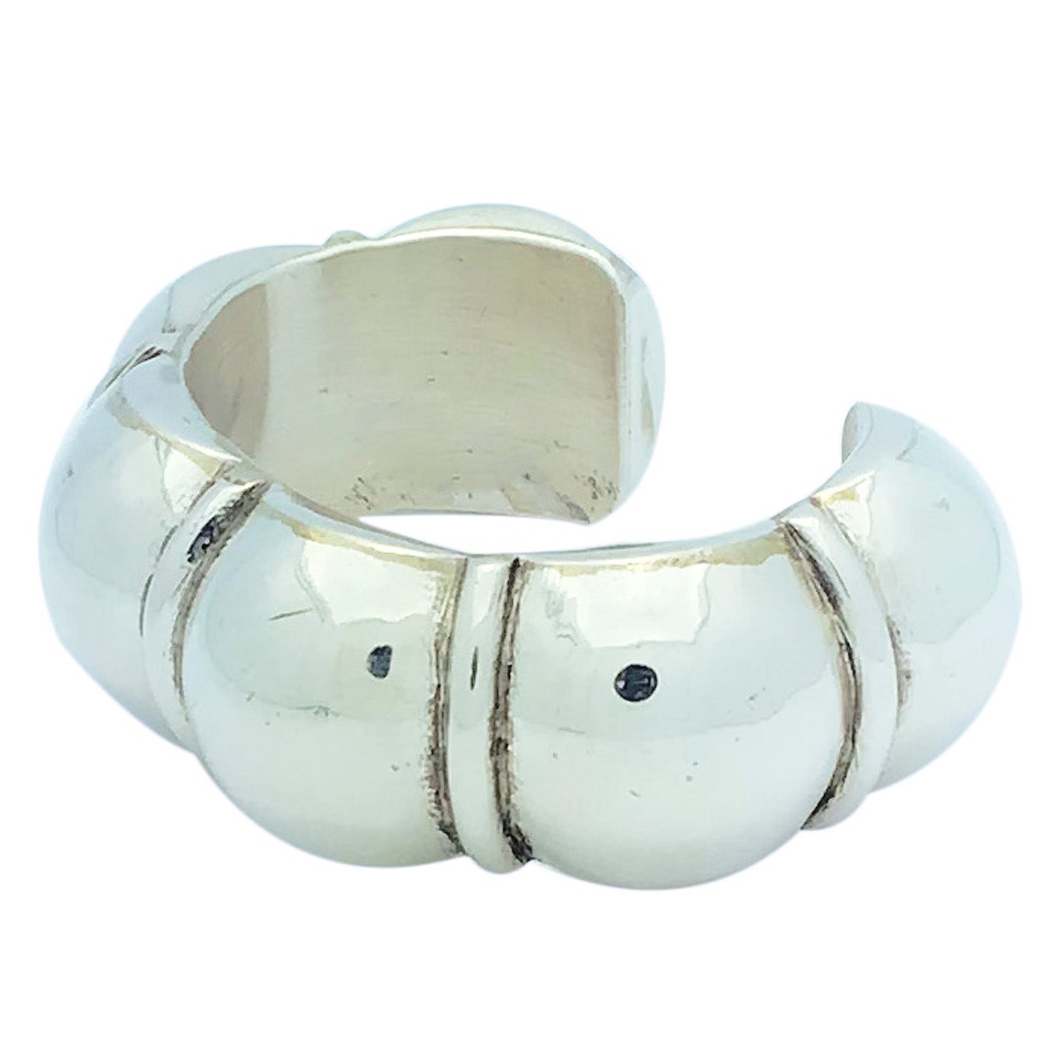 This bracelet is a mystery creation. Navajo silversmith Melvin Francis has created six domes to make the large sterling silver cuff. Between each dome he places a silver wire to give the bracelet a very comforting flow. We had never seen this style done before and it will make for a very impressive piece of wearable art. Silver is one of those great metals that look good with any outfit. You will find yourself wearing this piece dressed up and casually. The online Trading Post is full of Melvin Francis pieces so make sure you check them all out.