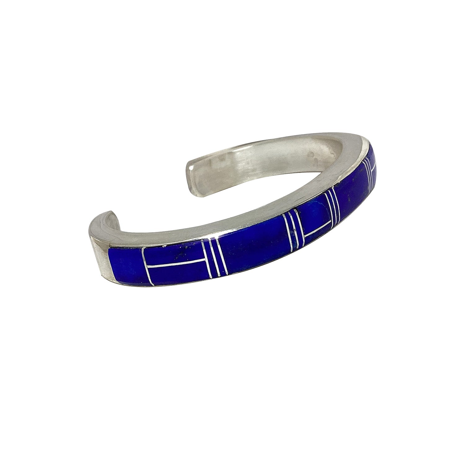 Melvin Francis, Bracelet, Lapis Inlay, Narrow, Sterling, Navajo, 6 7/8"