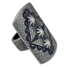 Monty Claw, Ring, Tufa Cast, Stars, Sterling Silver, Navajo Handmade, 8 1/2