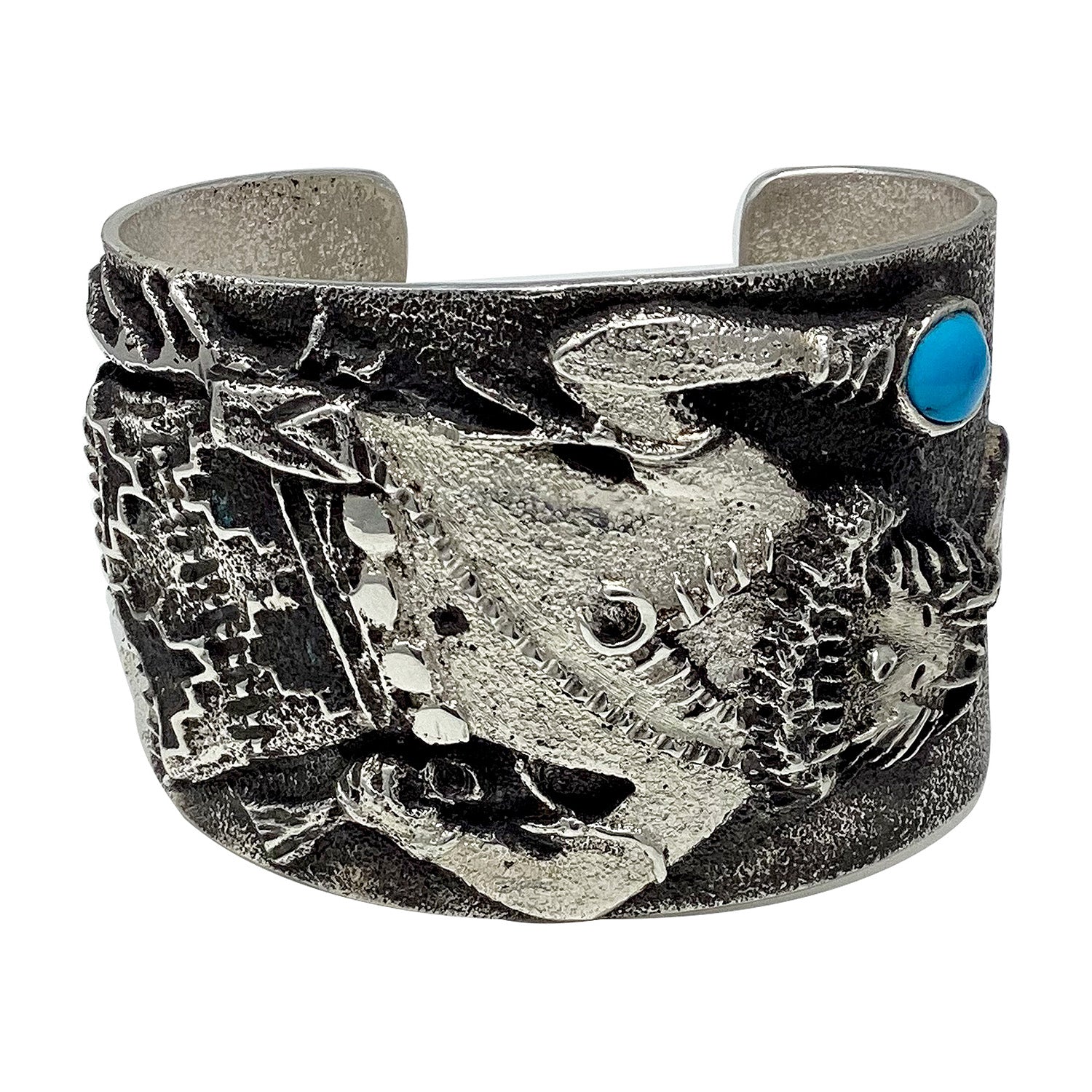 Philander Begay, Bracelet, Kingman Turquoise, Yei' bi' Chei', Navajo, 6 1/2"