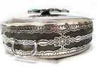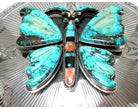 Make sure you visit the "our corner of the southwest" in the footer of our homepage to view article and additional pictures.78 years is a long time, it is pretty much the life expectancy for a US citizen. Navajo silver making is thought to have been around the last 160 years, two lives. Lots of things have happened between the mid 1800s and 2011. We have gone from the horse pulled wagon to our hybrid four-wheel drive suvs, the telegraph to video chat, digging a hole outdoors to indoor plumbing, but turquoise and silver is still pretty much the same.Zuni Indian Trader C.G. Wallace was instrumental to the development of the Zuni jewelry market. He concentrated on quality and style, two attributes that today's top Zuni artists continue. C.G. Wallace is more famous today then when he was a Trader, that is because of his famous 1975 auction that introduced many to the fabulous world of Zuni lapidary art. You can find websites dedicated to the C.G. Wallace artists and the collection that was offered in the auction, even the prices paid. A couple of names standout among the C.G. Wallace artists. However, one of them you could argue is the most prolific, and maybe C.G. Wallace's favorite, Leekya Deyuse. The Sotheby's auction catalog is filled with art by this famous artist and displays some incredible photographs of his work. After the auction was over C.G. Wallace took the pieces that didn't sell and offered them to collectors and dealers that didn't make the 3-day event. Perry Null was fairly new to the Indian art world in the mid 1970s, but seasoned enough to know when he was being offered something unique and valuable. He acquired this large carved and inlay butterfly from C.G. Wallace and put it away in a vault. The butterfly had already been sitting on the material covered cardboard for 40 years, more time wasn't going to make it any less desirable, and Perry knew you just didn't make anything out of the Leekya Deyuse butterfly.Navajo artist Thomas Curtis Sr. started making jewelry in the 1950s. He would split time between hammering sterling silver and chasing the trophy buckle on the rodeo circuit. In the 1970s Perry and Thomas began a working relationship that would eventually turn into a valued friendship. Perry had several boxes made by Thomas and even some award-winning spurs. Thomas had made a reputation for himself by assembling museum quality silver pieces, and eventually the two, Perry & Thomas, would work together on maybe their most important piece.78 years is a long time, that is how long this Leekya Deyuse butterfly stayed glued to the cardboard displaying its magnificent beauty. Thomas Curtis wasn't even born yet when Leekya carved this spectacular piece, Perry neither. Perry and Thomas started to talk about making this box probably 6 months before they made the agreement to go forward with the project. Both of them had doubts, Perry whether such a valuable Leekya Deyuse carving should even be handled after so many years have passed, and Thomas on how to make such a big complicated box.