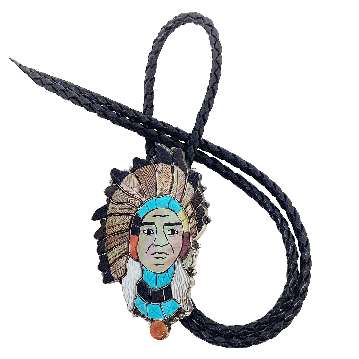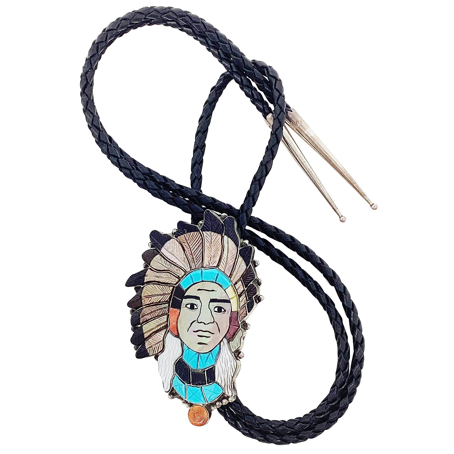 Shirley Benn, Bolo, Chief Head, Multi Stone Inlay, Tewa Handmade, 42"