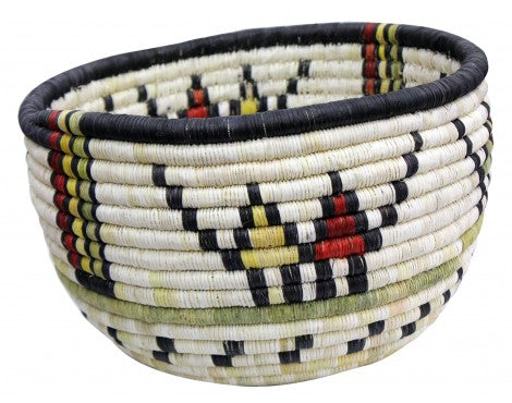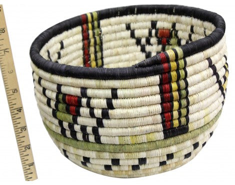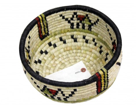Hopi coil basket weaving isn't something you learn overnight. All of the weavers we have baskets from grew up in a house that wove baskets, something that was introduced to them from an early age. You will find these basket weavers on the Second Mesa. We have an interview with Irene Lamayaktewa who talked a little bit about the colors you find and the materials in coil basket. ???We make the coil basket from straw and yucca that we pick from areas around Hopi. Many of the colors are from the yucca plant, yellow comes from yucca being harvested in winter, the white is summer, and the green can be picked any time of the year. Also, we will use sunflower for the black and Hopi Tea (hohocy) for the red.? Make sure you look through our online collection. We have both baskets and plaques.