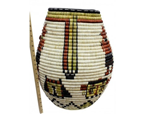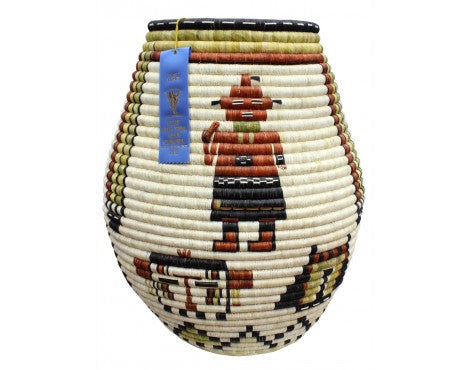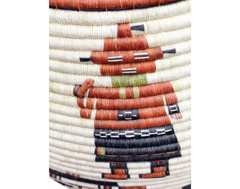 Rhetta Lou Adams, Hopi Coil Basket, Kachina Faces, 23" x 18 1/2"