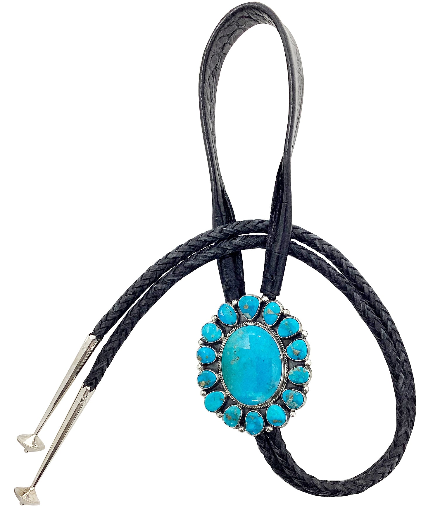 Tyler Brown, Bolo Tie, Sonoran Rose Turquoise, Cluster, Navajo Handmade, 44”