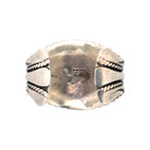 This exceptional Navajo bracelet by Orville Tsinnis, circa 2000s, is a powerful statement of traditional artistry and craftsmanship. Handmade in sterling silver, it features a bold cluster of Kingman Turquoise cabochons, each with a vibrant blue hue and natural matrix that adds character and uniqueness. The stones are set in smooth bezels and accented by silver drops, giving the design both texture and depth. Framing the cluster are heavy twisted rope borders, along with stamped and sculpted silverwork that highlight Tsinnis’s renowned attention to detail. The wide cuff design provides substantial presence on the wrist, making it both a collectible and wearable work of art. Known for his masterful silversmithing, Orville Tsinnis created pieces that embody strength, balance, and elegance.
