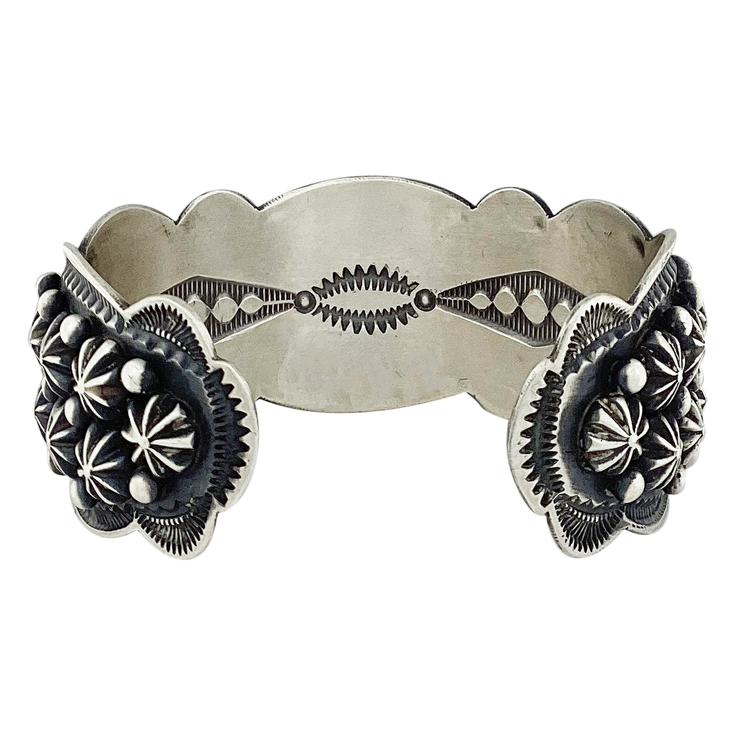 Roland Dixon, Bracelet, Silver Buttons, Stamping, Navajo Handmade, 6 7/8"
