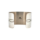 This sterling silver bracelet by Herman Nez is a bold and masterful display of Navajo handmade artistry. The wide cuff features a striking grid of hand-cut Kingman Turquoise stones, each meticulously set to create a seamless mosaic of vivid blue. The stones’ natural variations in hue and matrix add depth and character, showcasing the beauty of authentic turquoise. The dark oxidized background provides contrast, making the vibrant stones stand out with even greater brilliance. Strong and substantial, this bracelet reflects both traditional Navajo craftsmanship and a contemporary geometric design. Its bold style makes it a true statement piece, perfect for collectors and admirers of fine Native jewelry.
