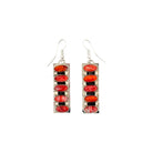 These vibrant earrings by Navajo artist Bryan Joe showcase richly colored spiny oyster shell, arranged in a striking vertical pattern. Each oval cabochon is expertly bezel-set in sterling silver, framed by polished silver beads that add texture and dimension to the design. The warm hues of the spiny oyster shell contrast beautifully with the darkened background, enhancing the depth and brilliance of each stone. Joe’s clean, contemporary lines blend seamlessly with traditional Navajo craftsmanship, creating a bold statement piece with timeless appeal. Handmade with precision and artistry, these earrings bring a radiant touch of Southwestern elegance to any collection.