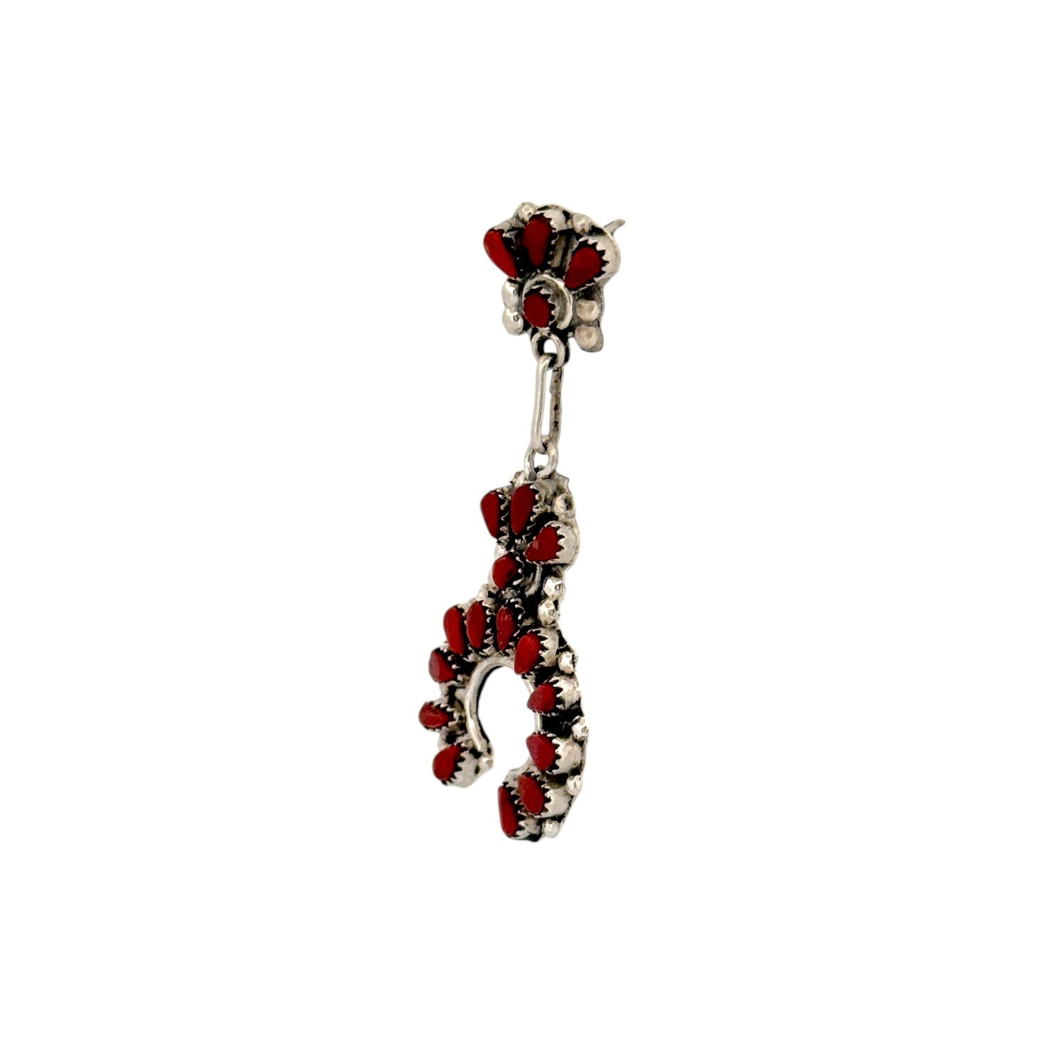 Alice Mutte, Earrings, Coral, Sterling Silver, Zuni Handmade, 2"